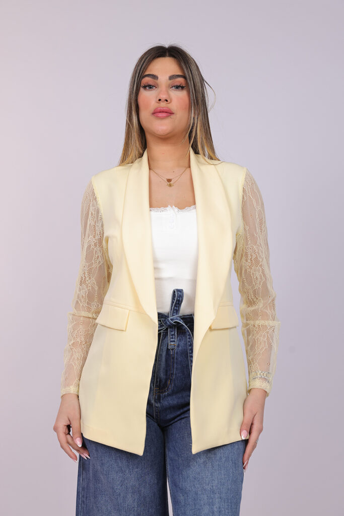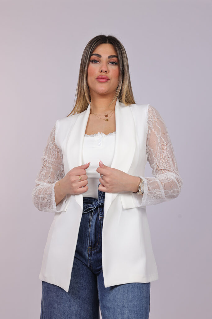 Added to your favoritesLace Sleeve Open Blazer28.50 $Size: S, M, L, XL, XXLColor: WhitePinkYellowBeige