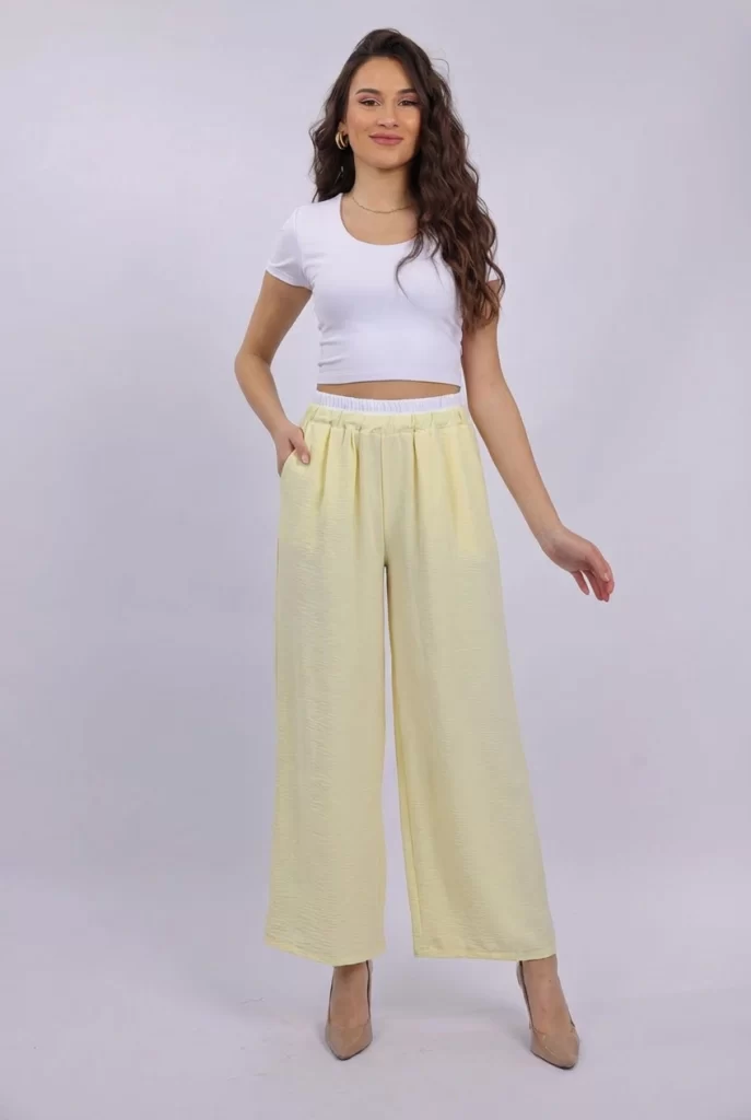 Added to your favoritesPleated Wide-Leg Pants18.50 $Size: S, M, L, XLColor: BlackChocoYellowBeigeBaby Blue