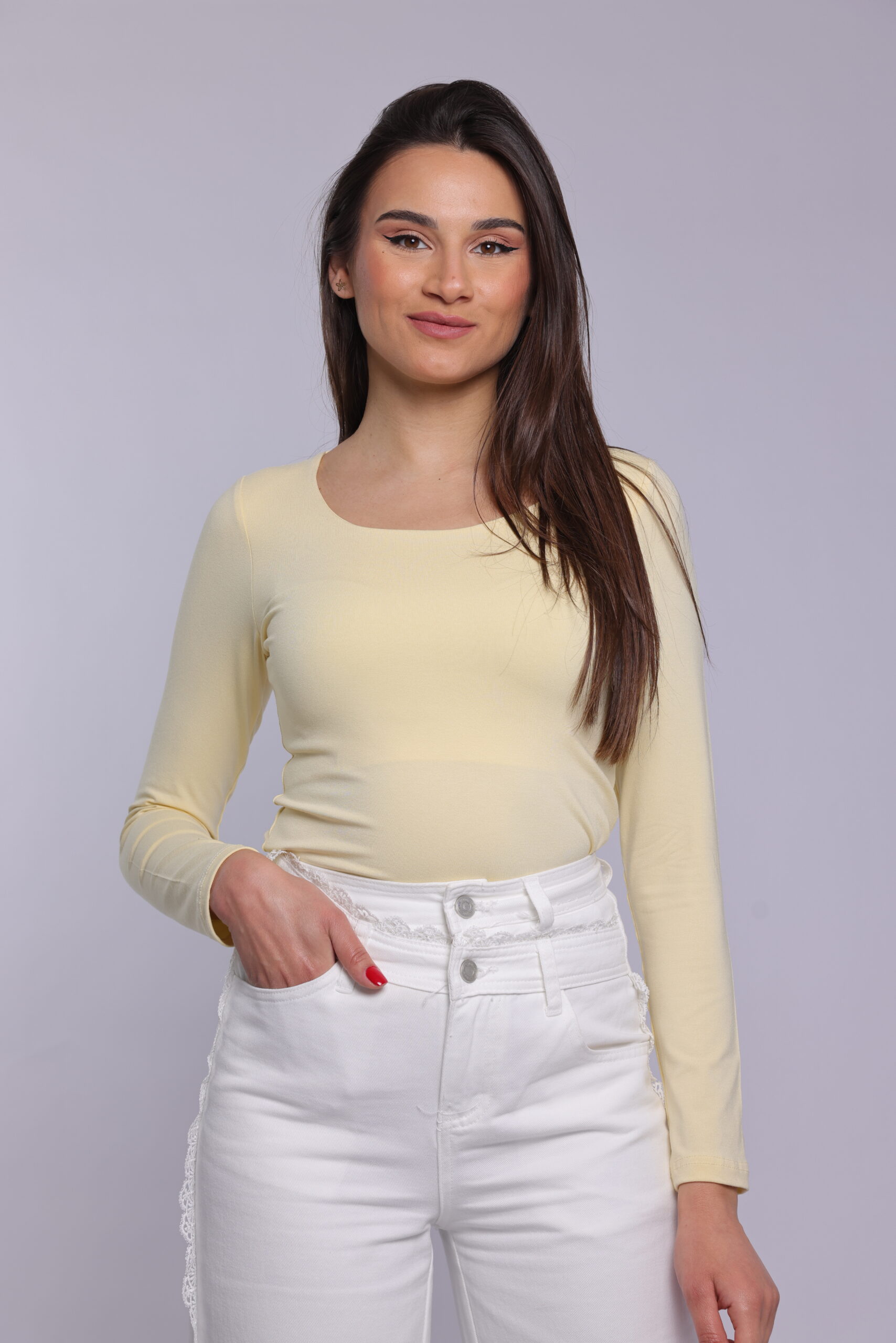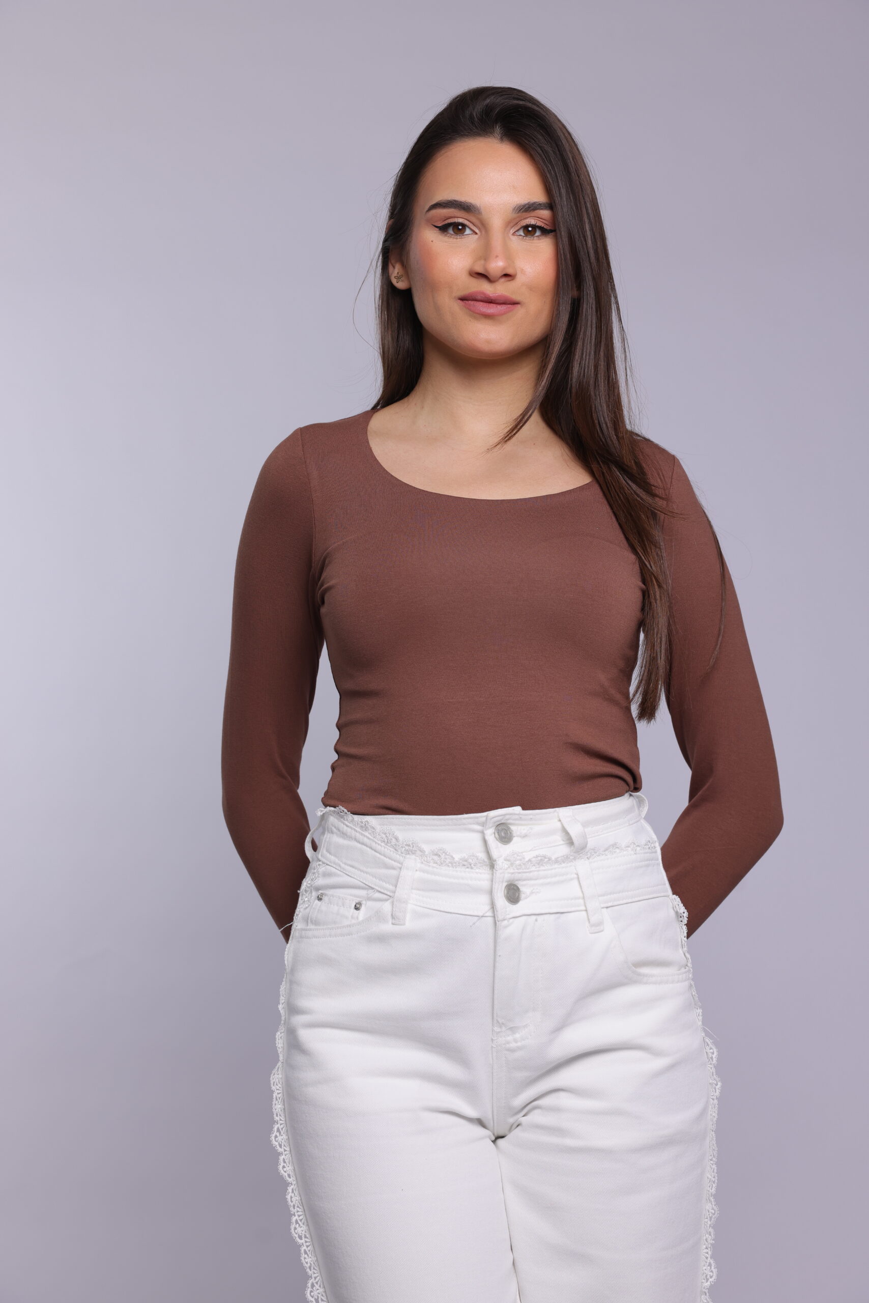 A timeless wardrobe essential ๐ This fitted long sleeve top features a clean, minimal design with a flattering scoop neckline. Soft, stretchy, and comfortable, itโs perfect for layering or wearing on its own for a sleek everyday look.