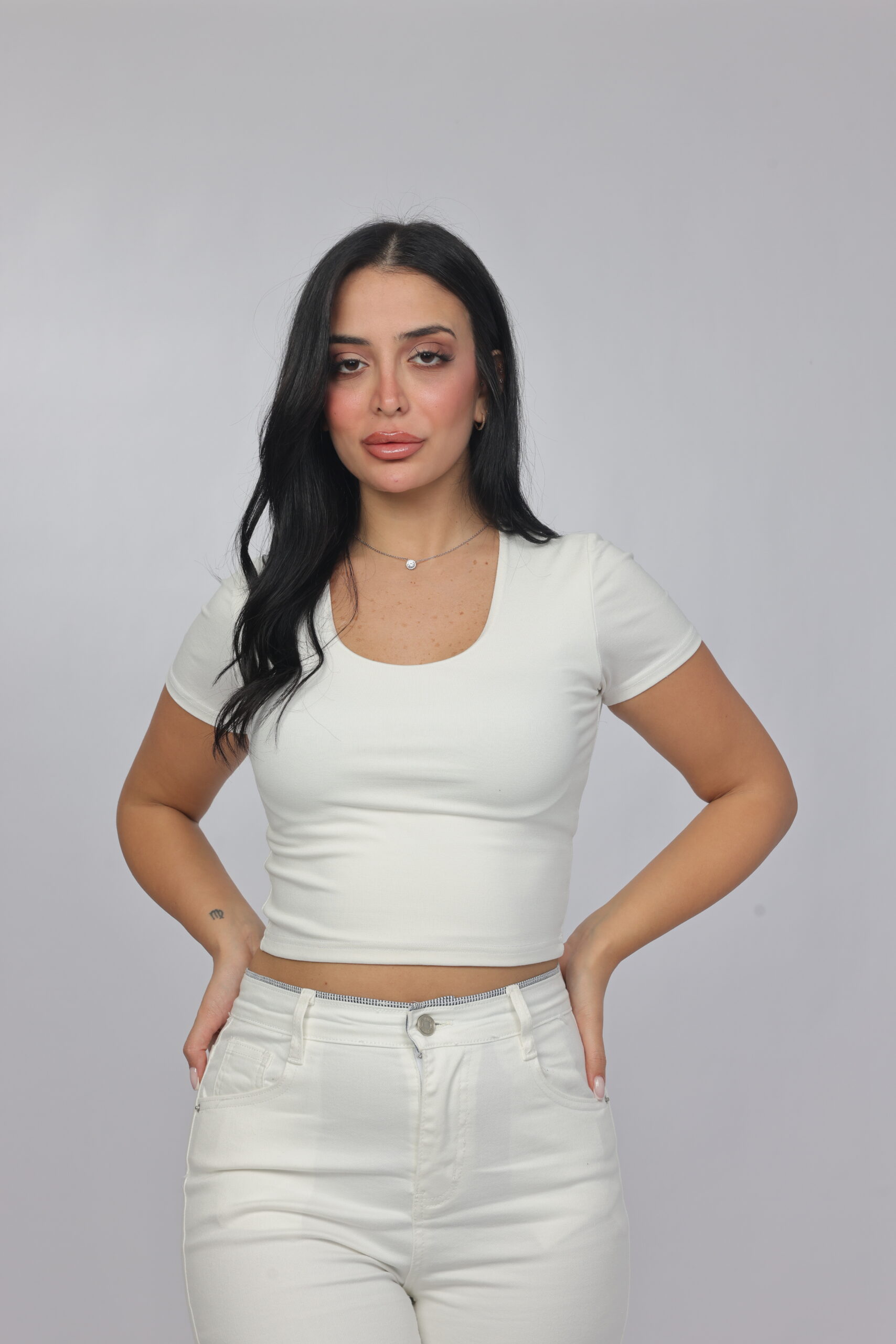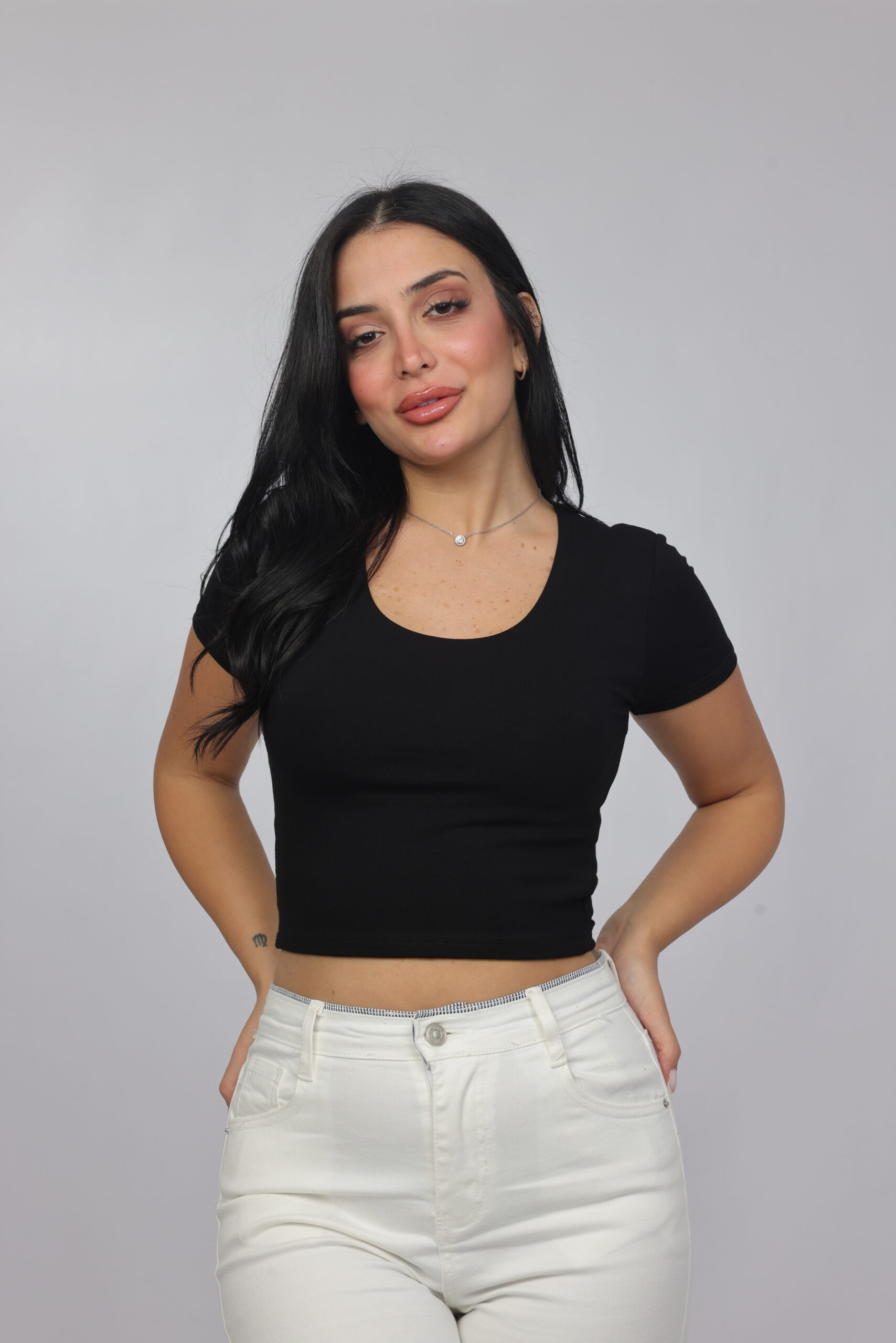 A must-have everyday essential designed with a flattering scoop neckline and a fitted silhouette. This cropped top is perfect for layering or wearing on its own, offering comfort, stretch, and effortless styling for any casual look.