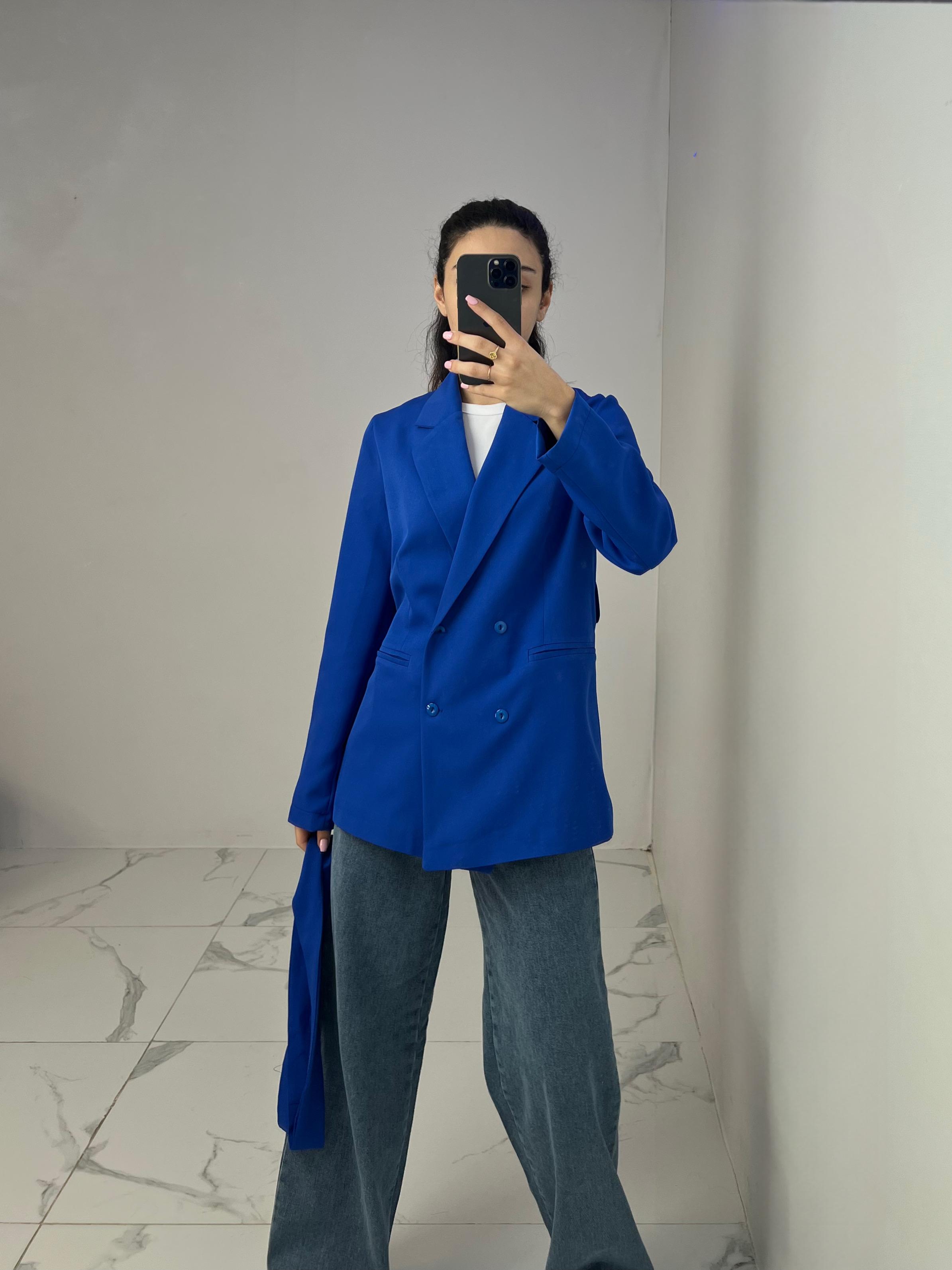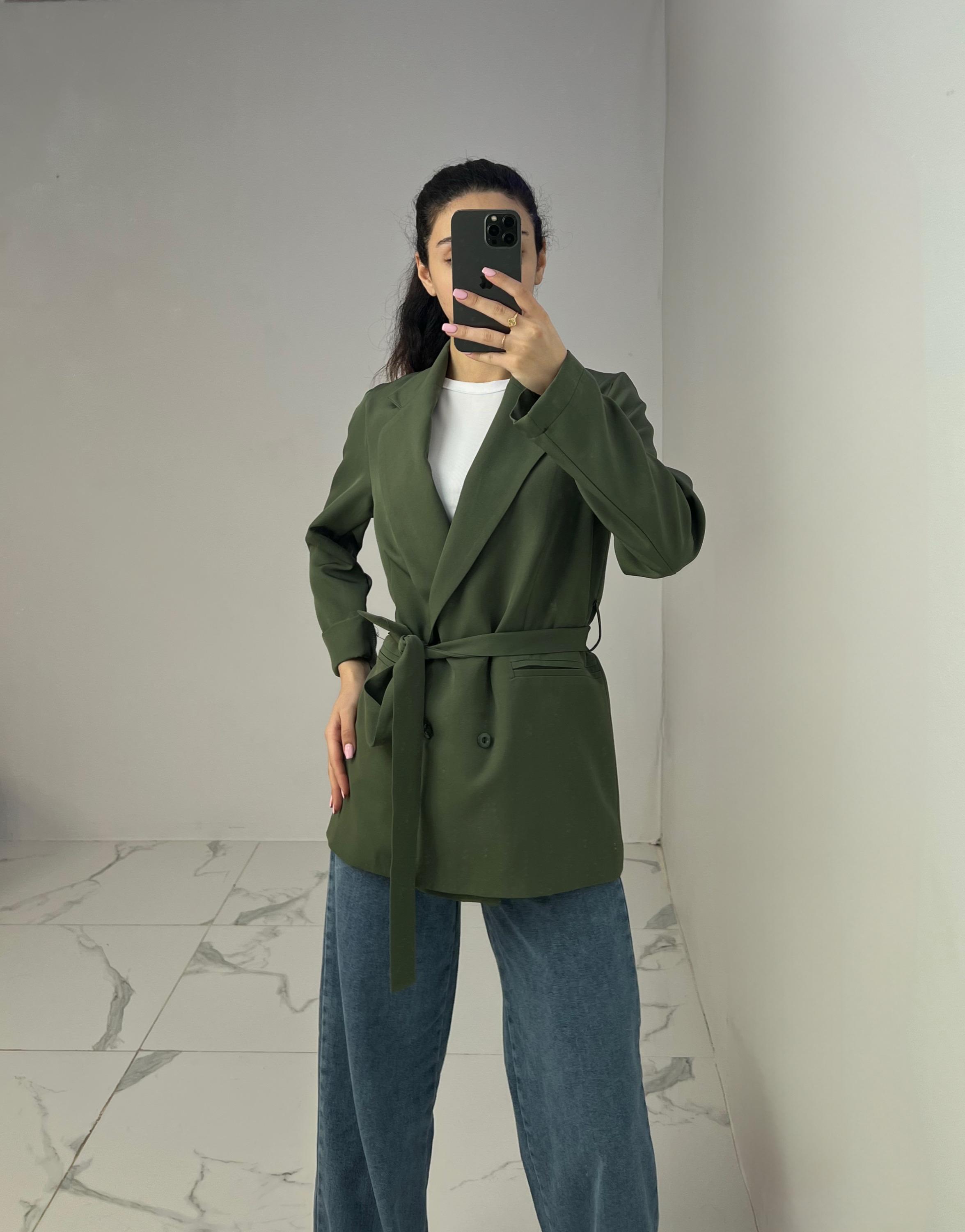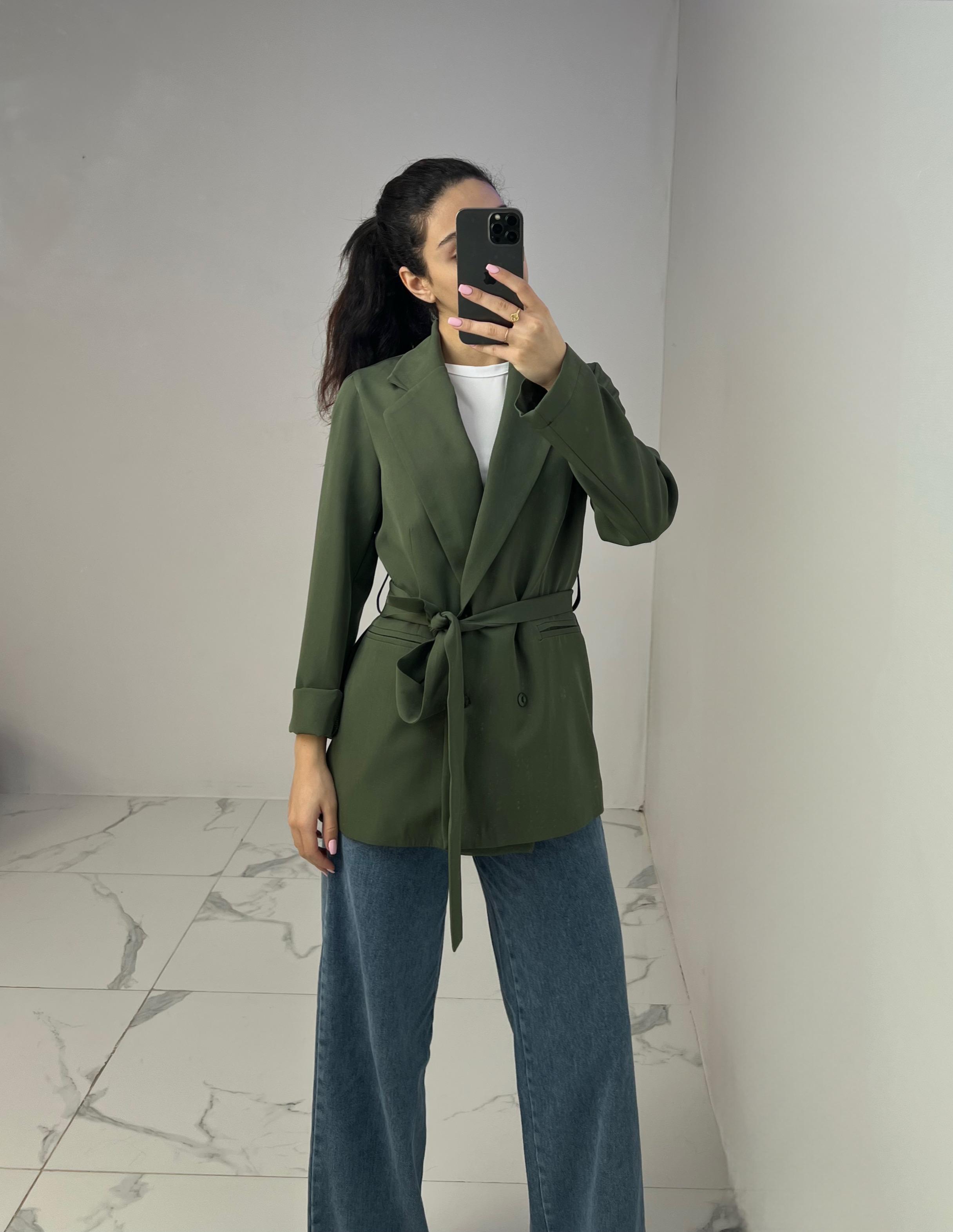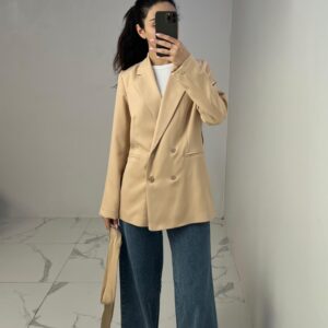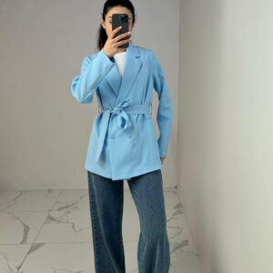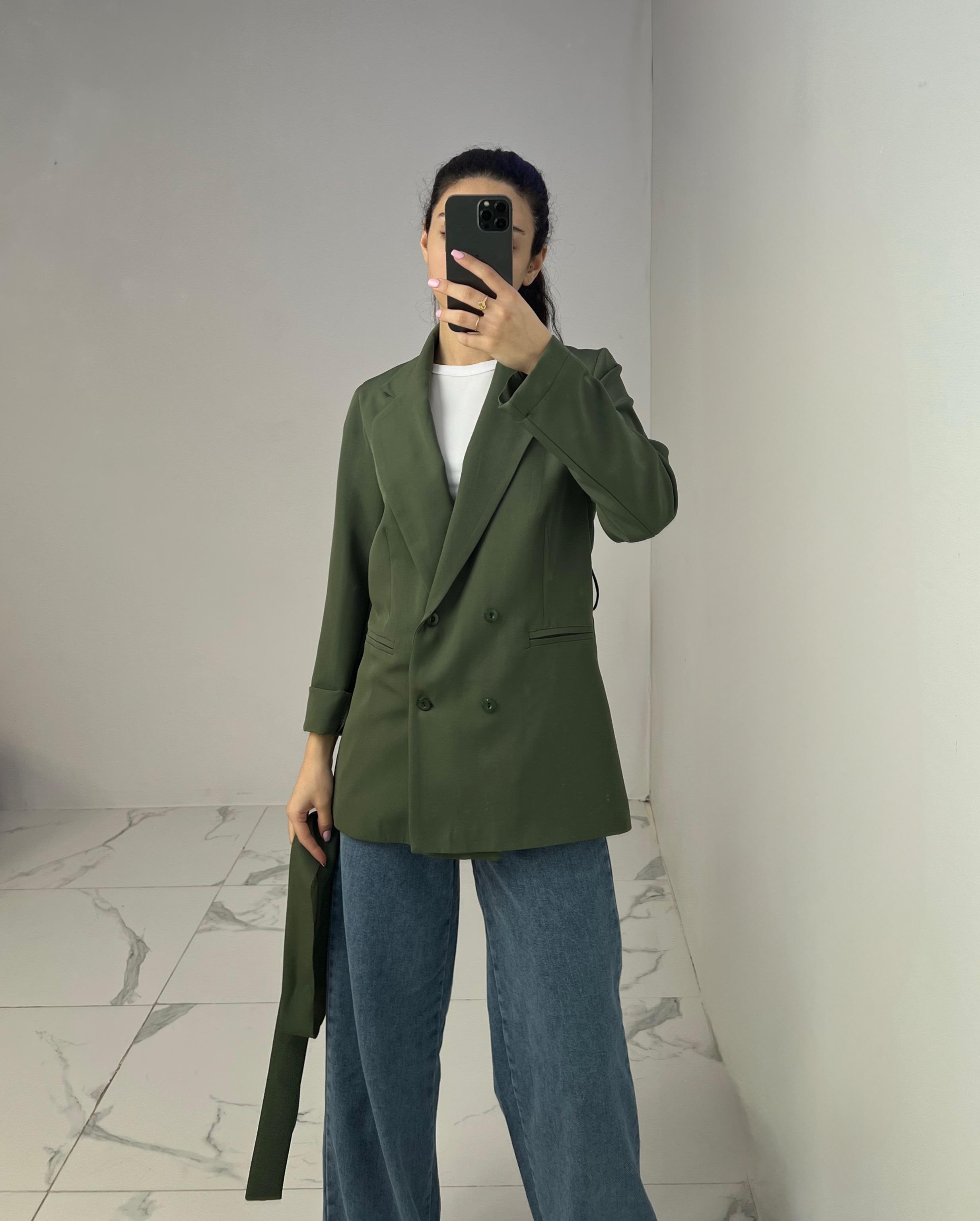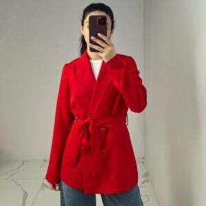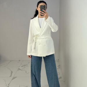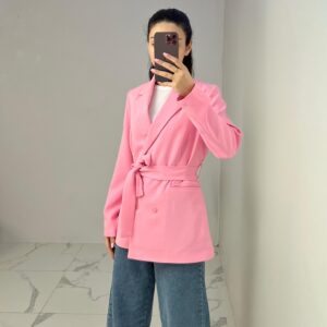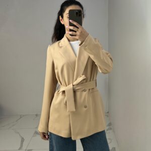 Belted Blazer with Double Buttons