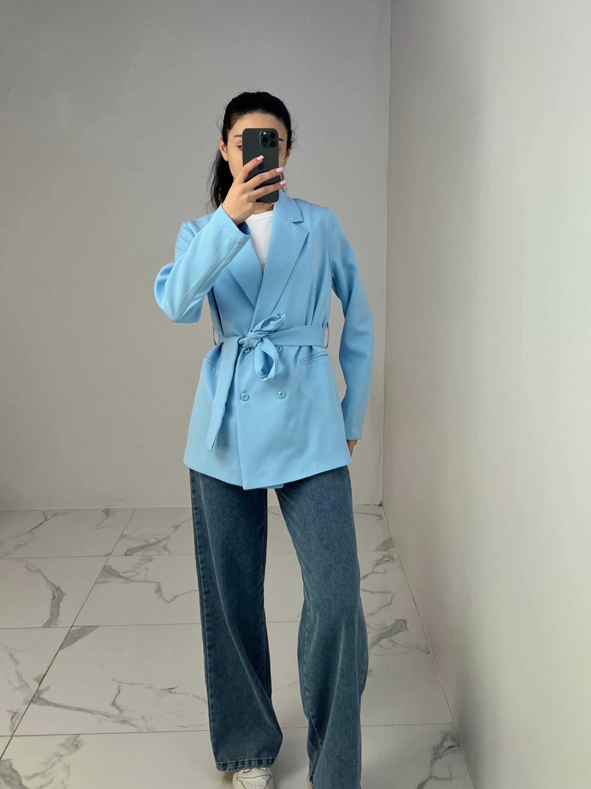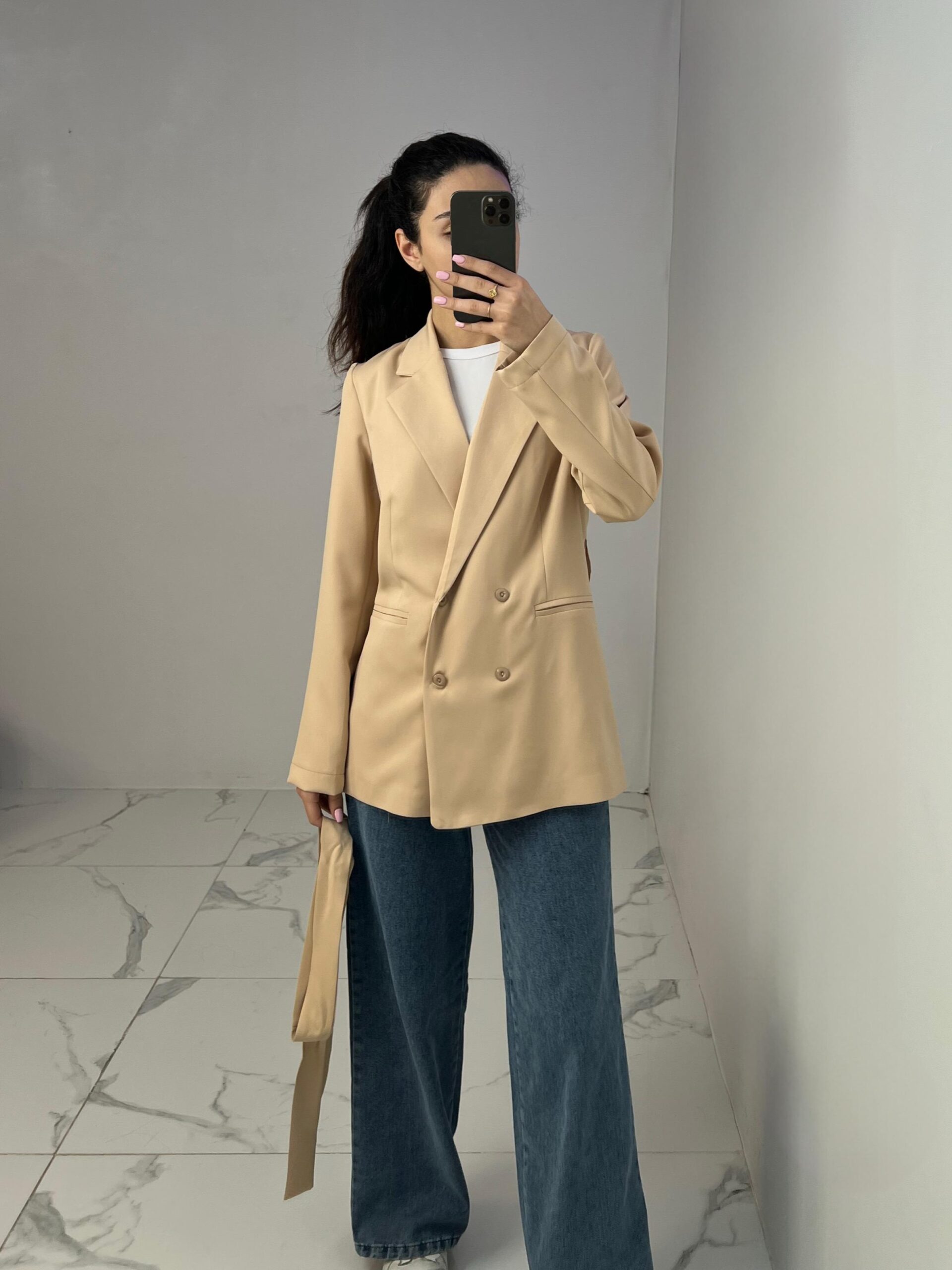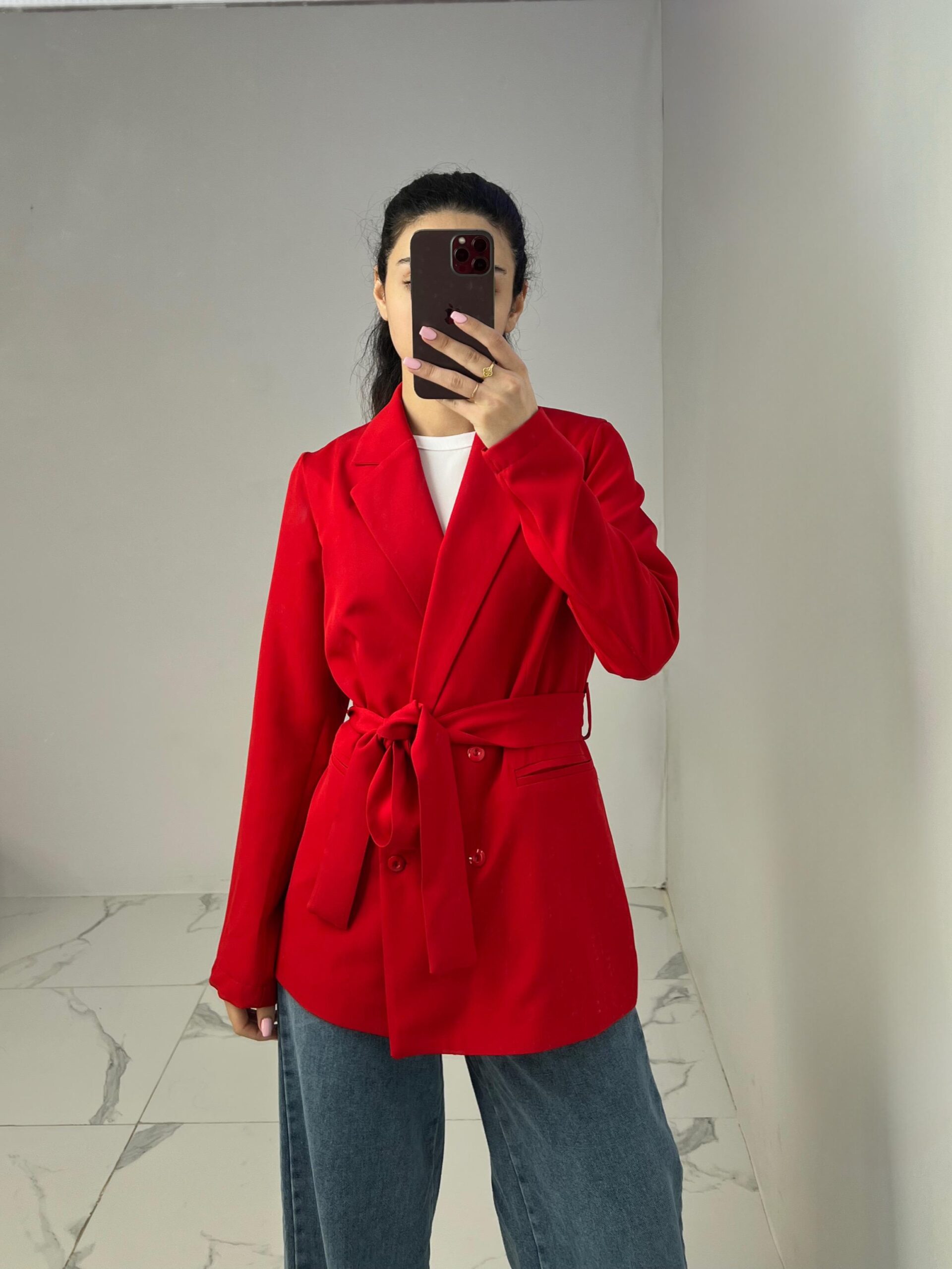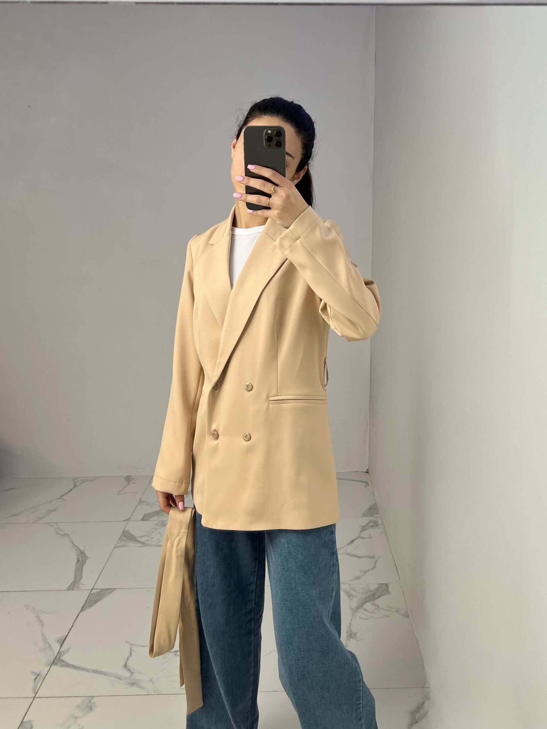 Belted Blazer with Double Buttons
