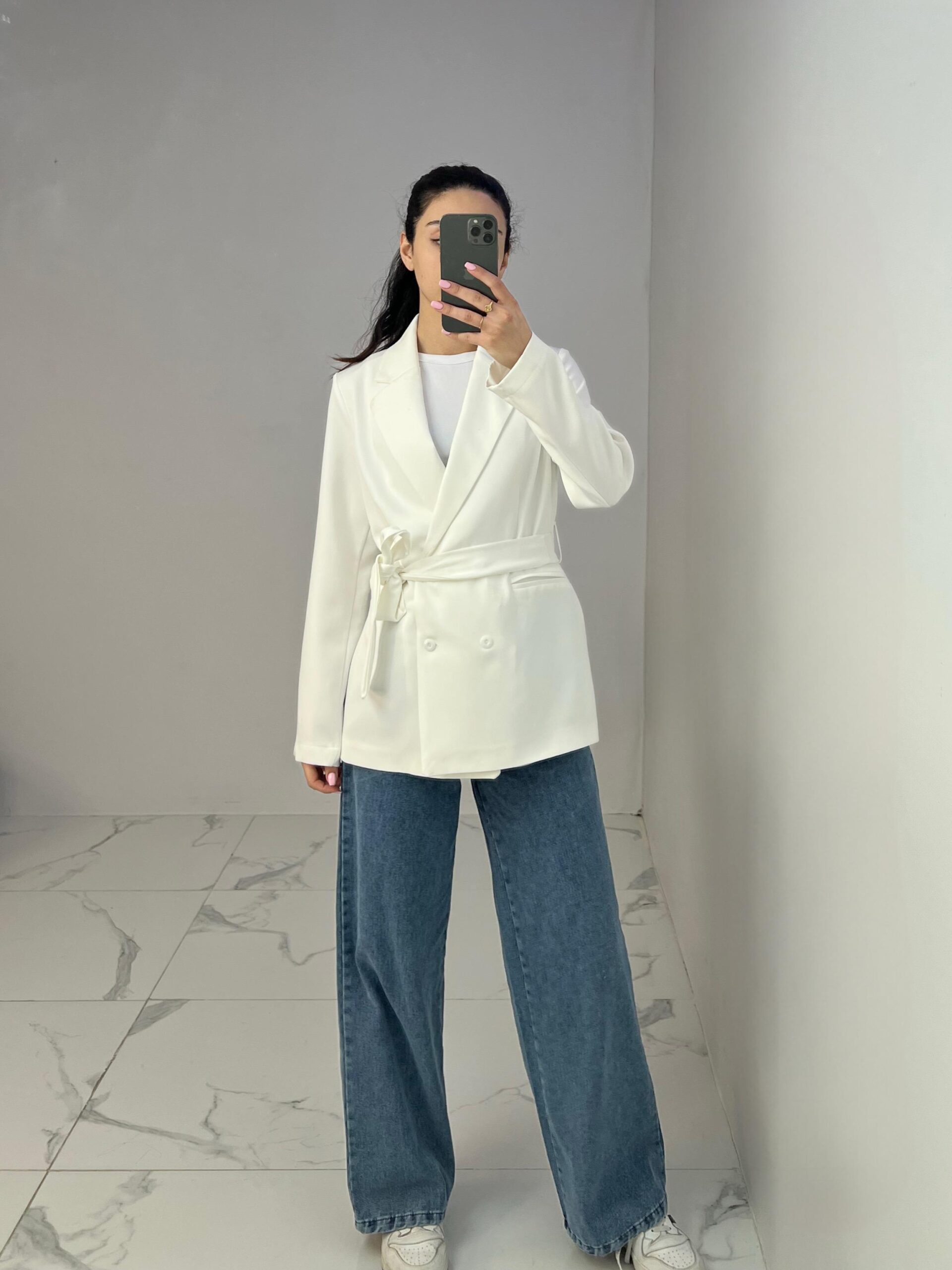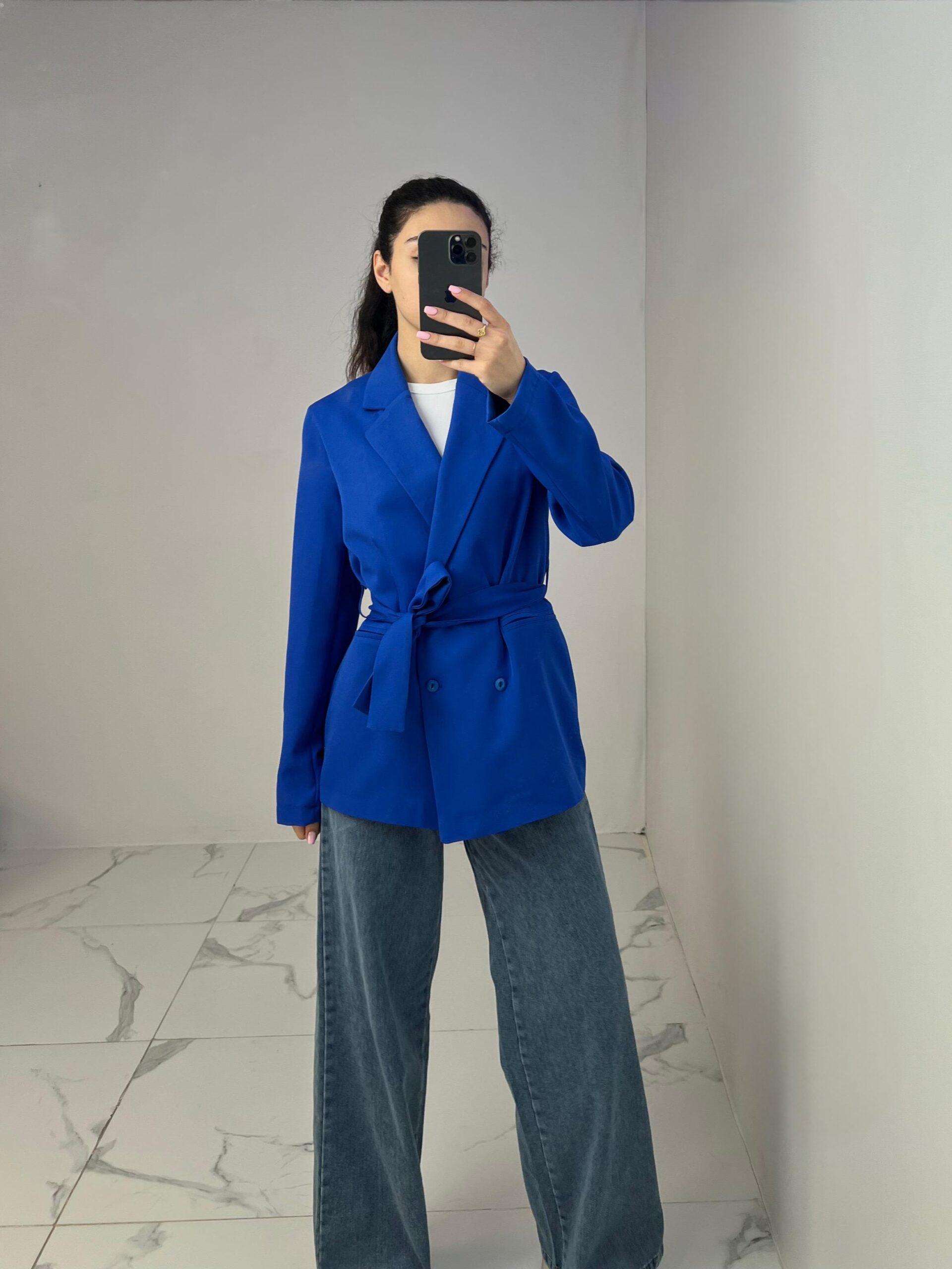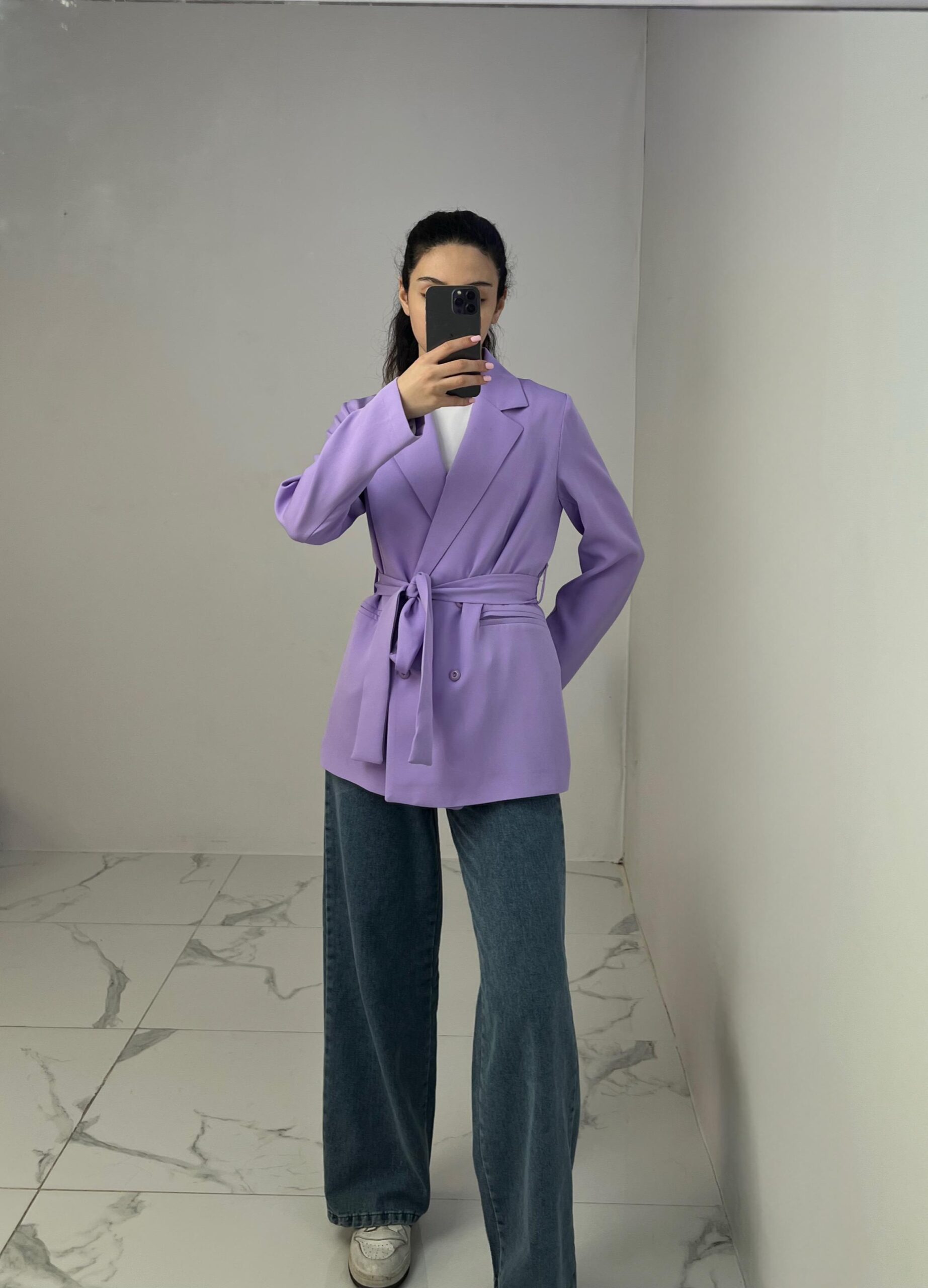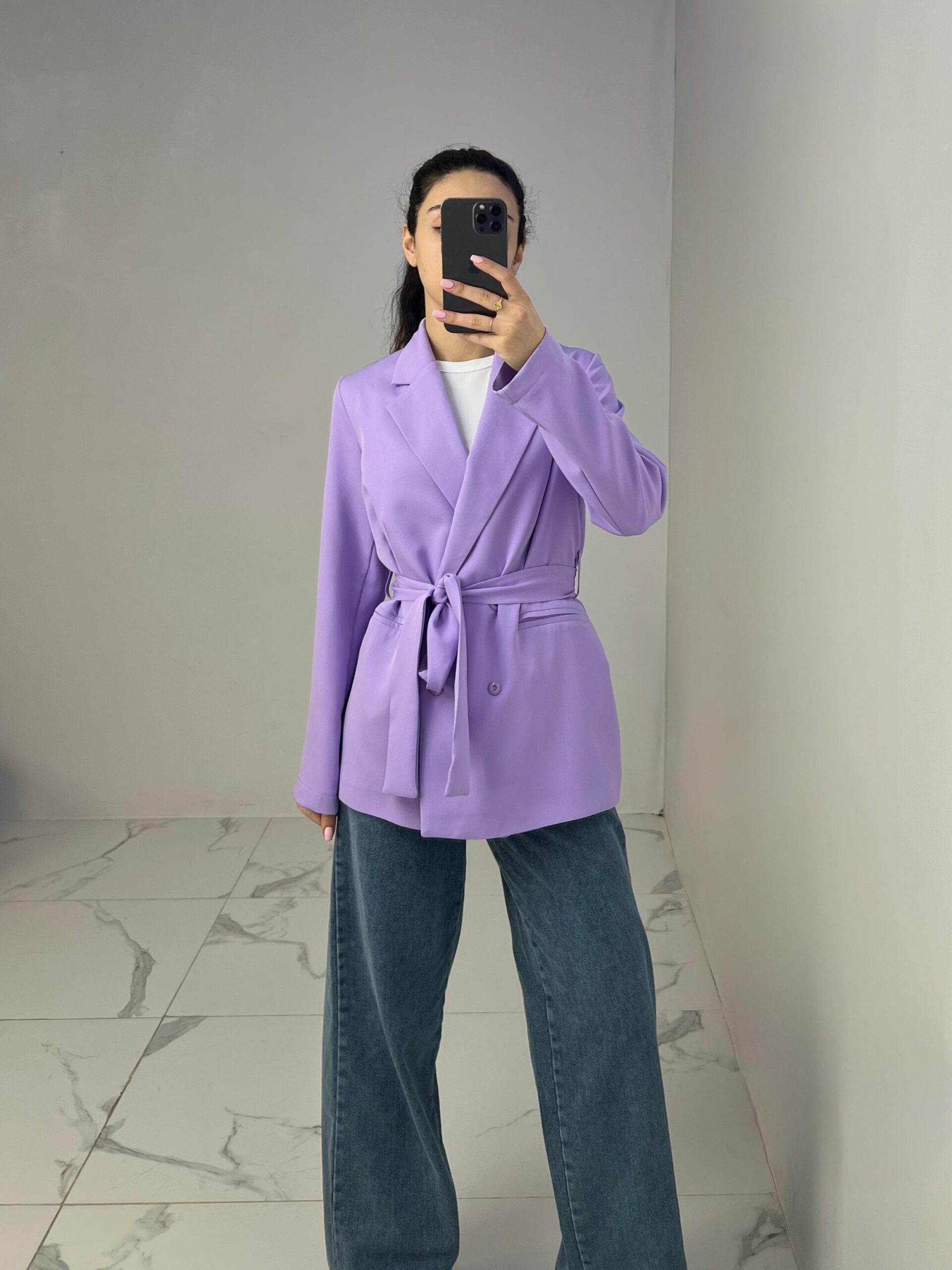 Belted Blazer with Double Buttons