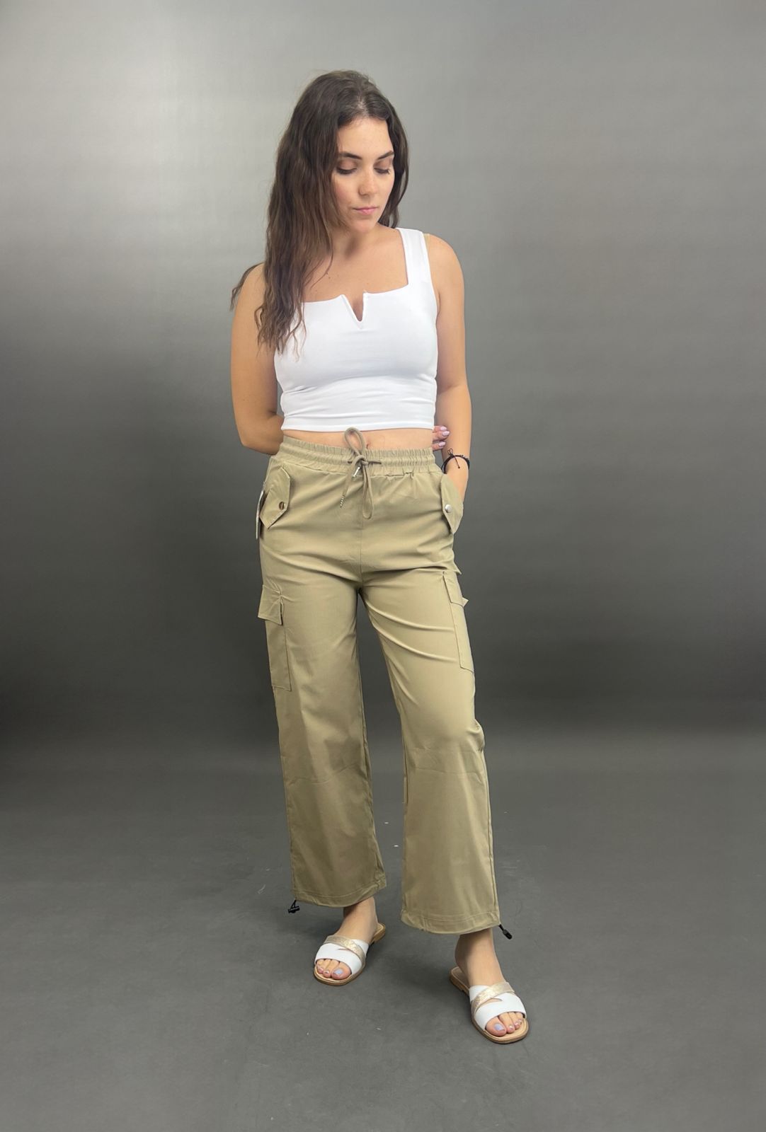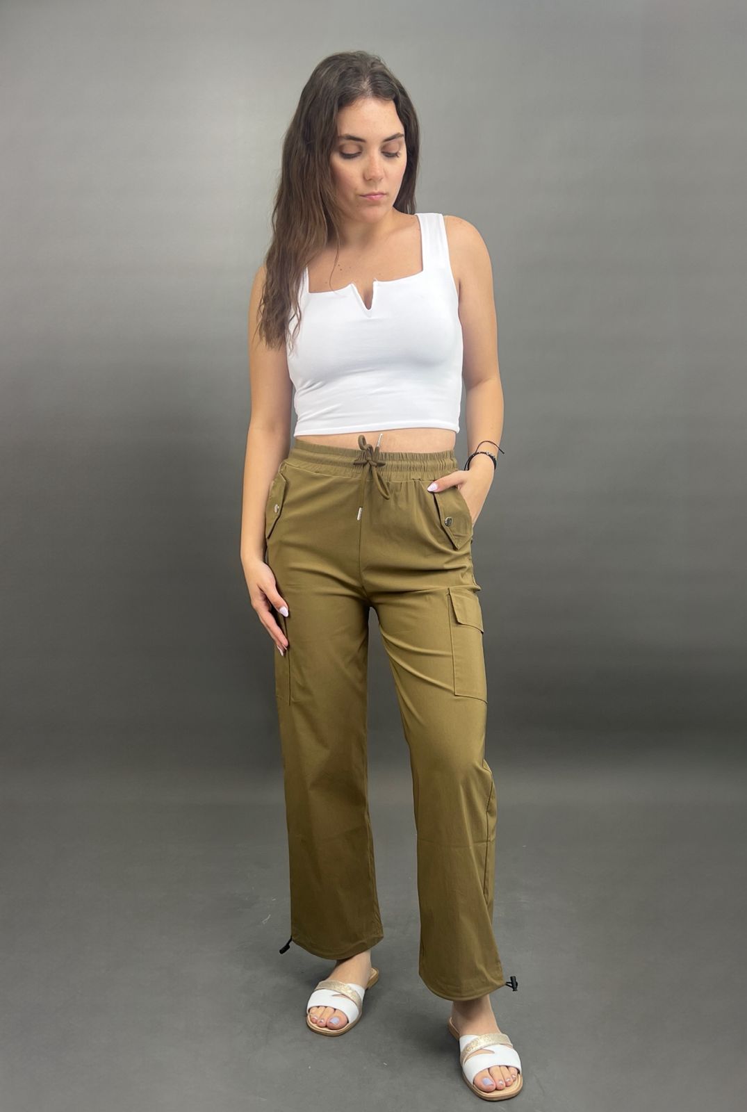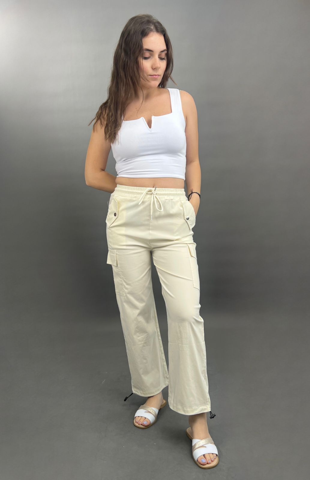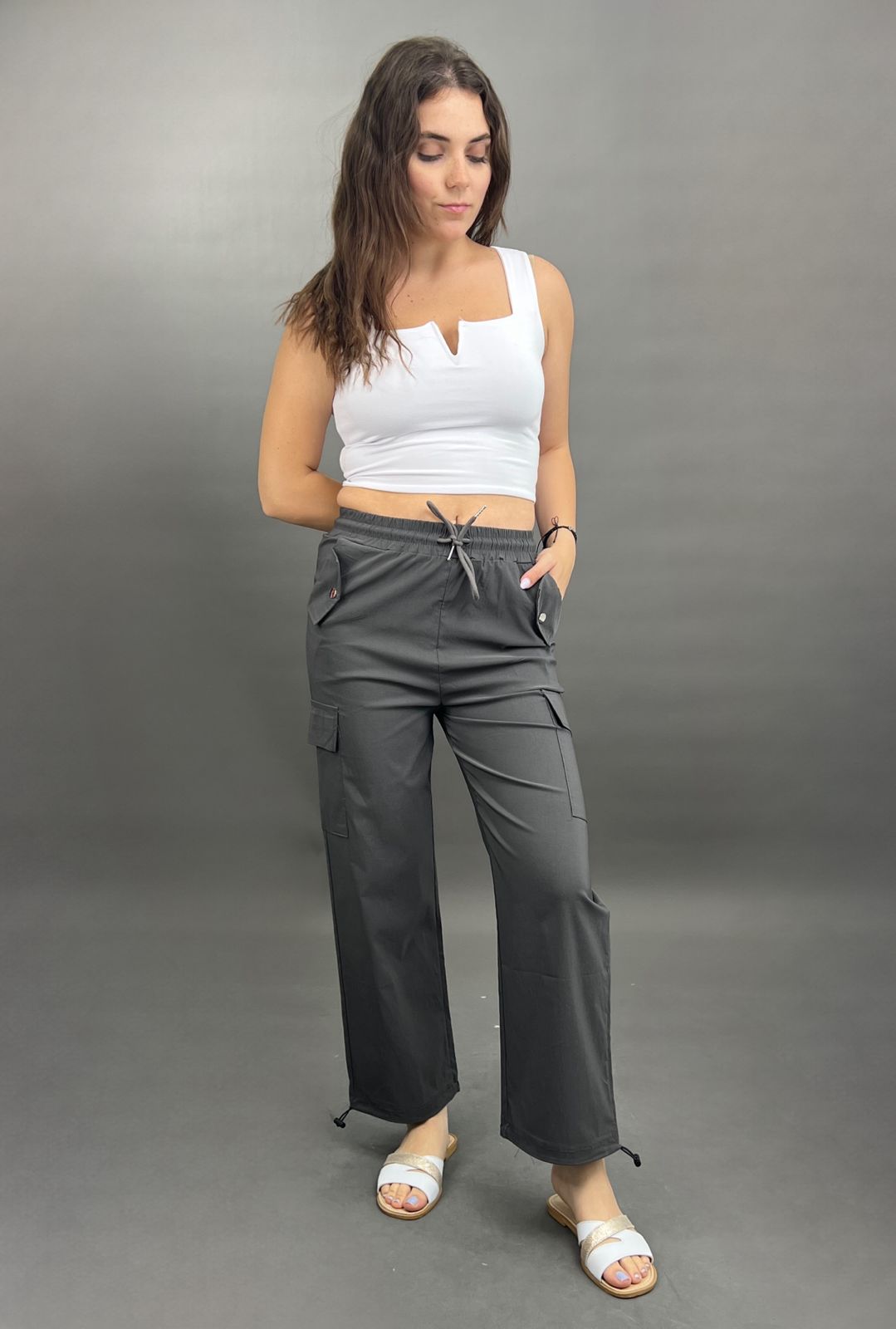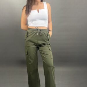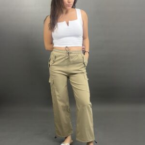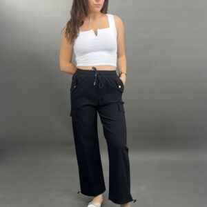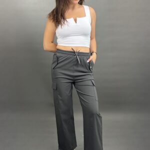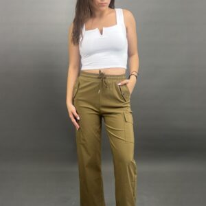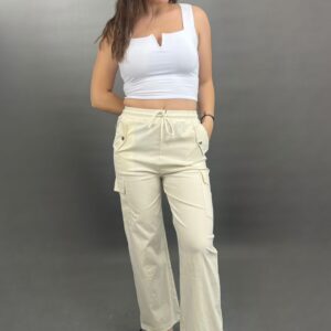 These comfortable and stylish cargo pants feature a practical drawstring waist for an adjustable fit. Equipped with functional side pockets, they combine utility with a relaxed silhouette, perfect for everyday wear.