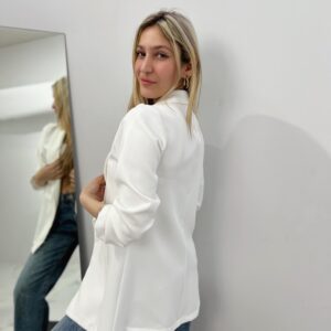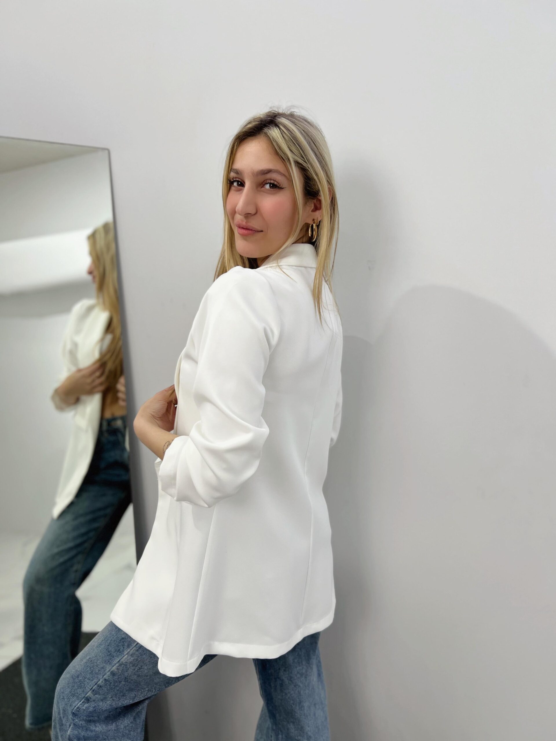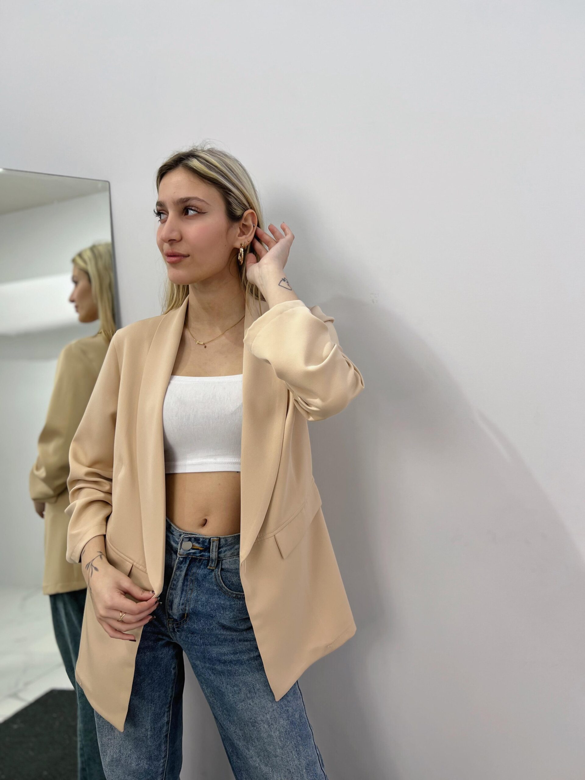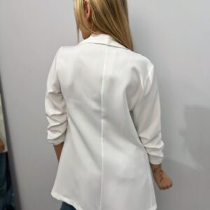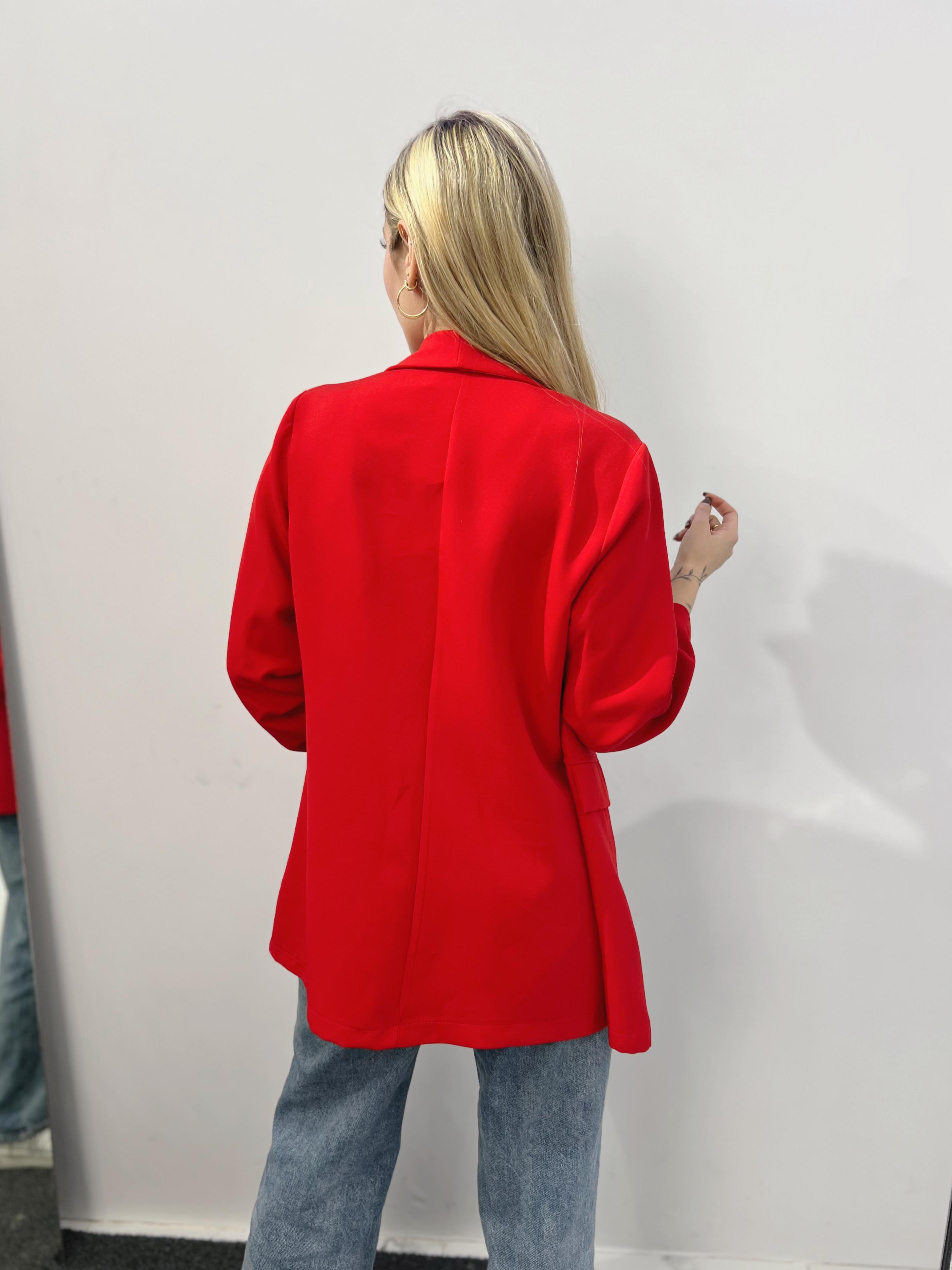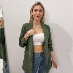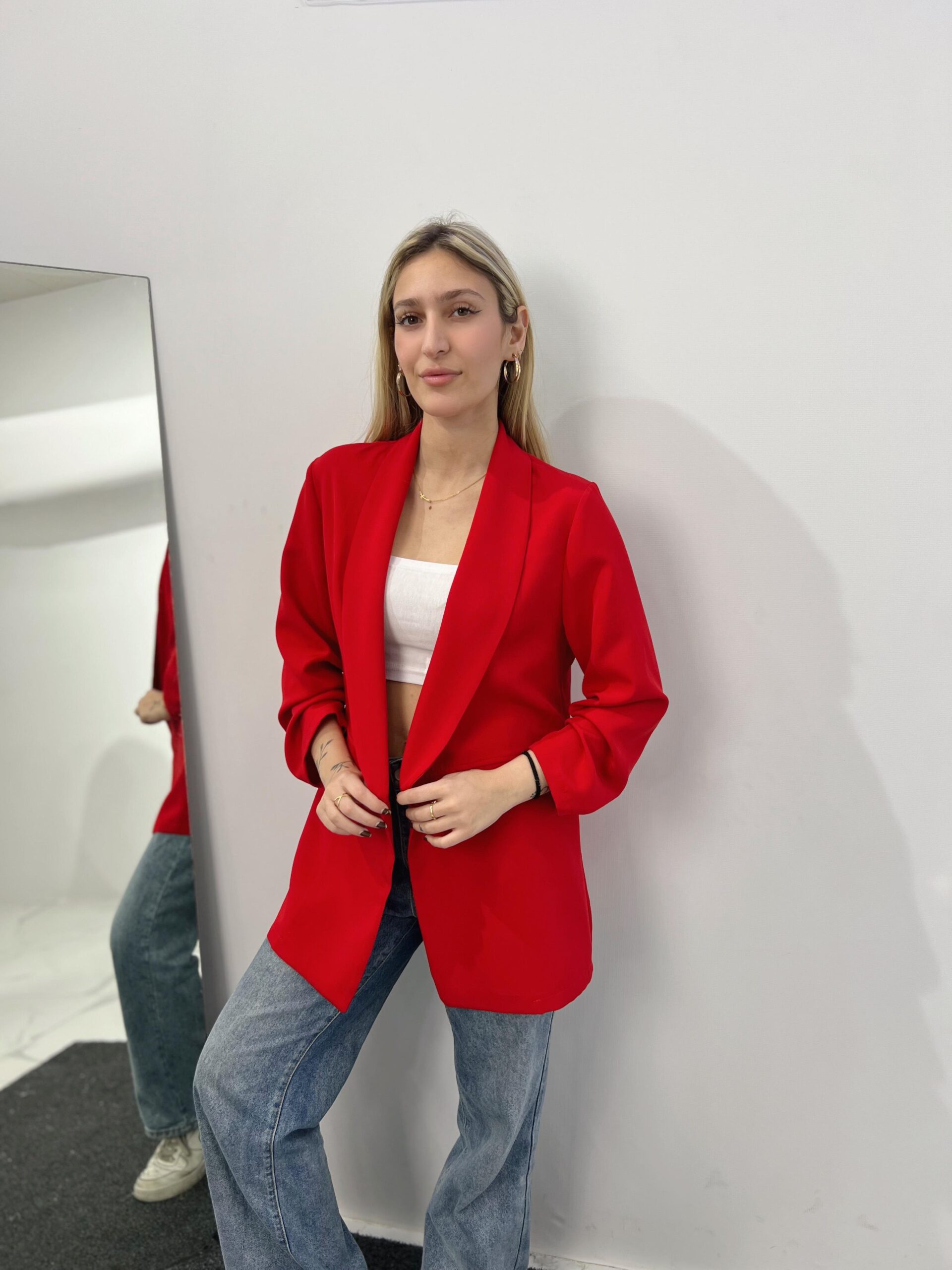 This elegant pink blazer features a tailored fit, draped open front, ruched sleeves, and stylish flap pocket details. Its high-quality fabric makes it perfect for both casual and formal looks.