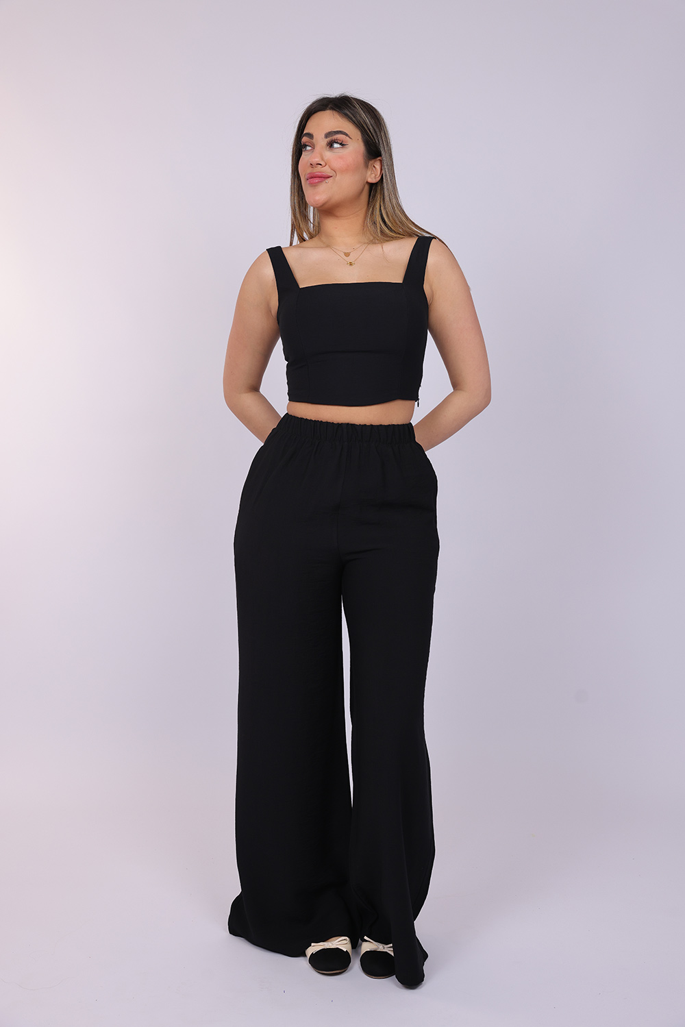 Cropped Top & Wide-Leg Pants Set