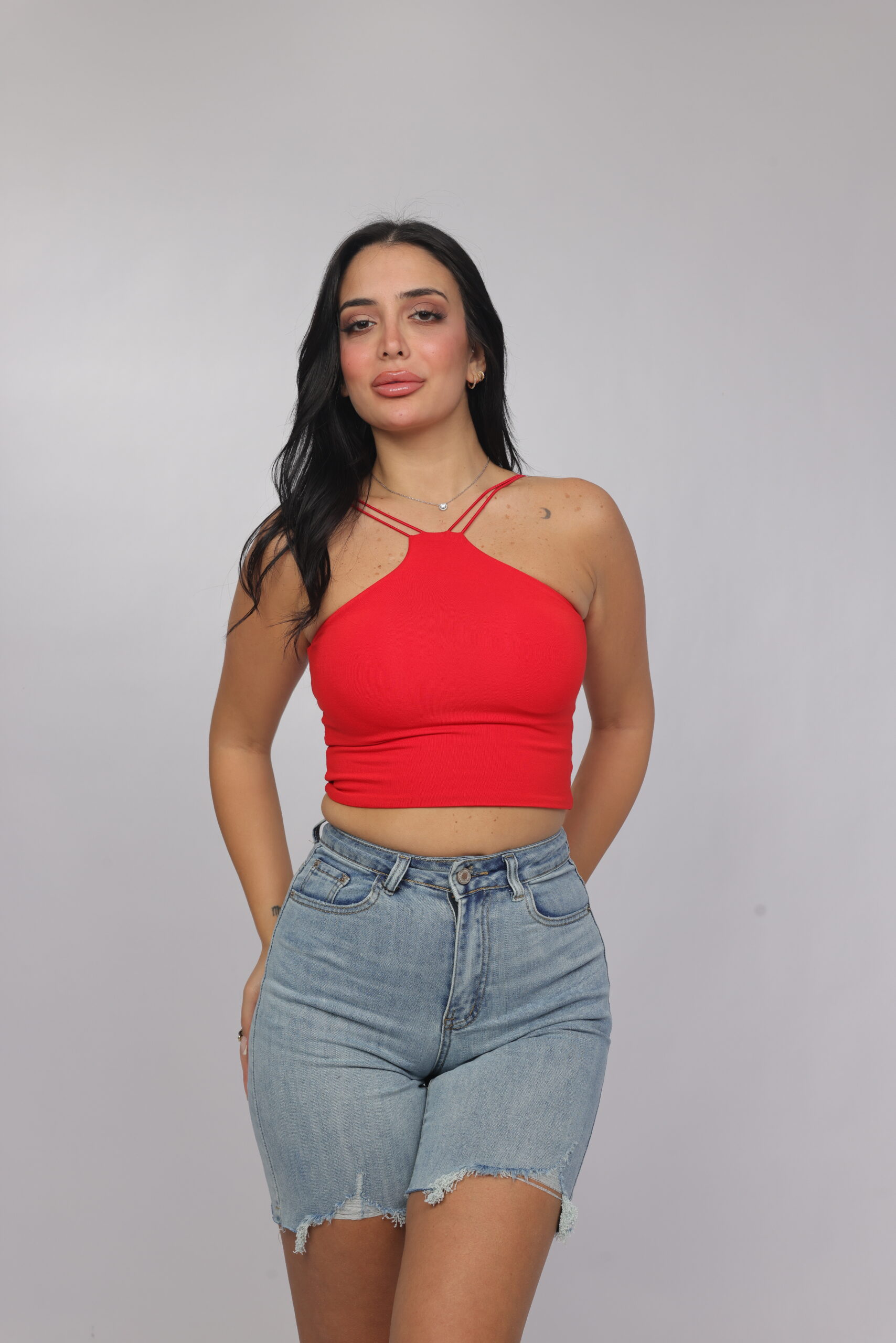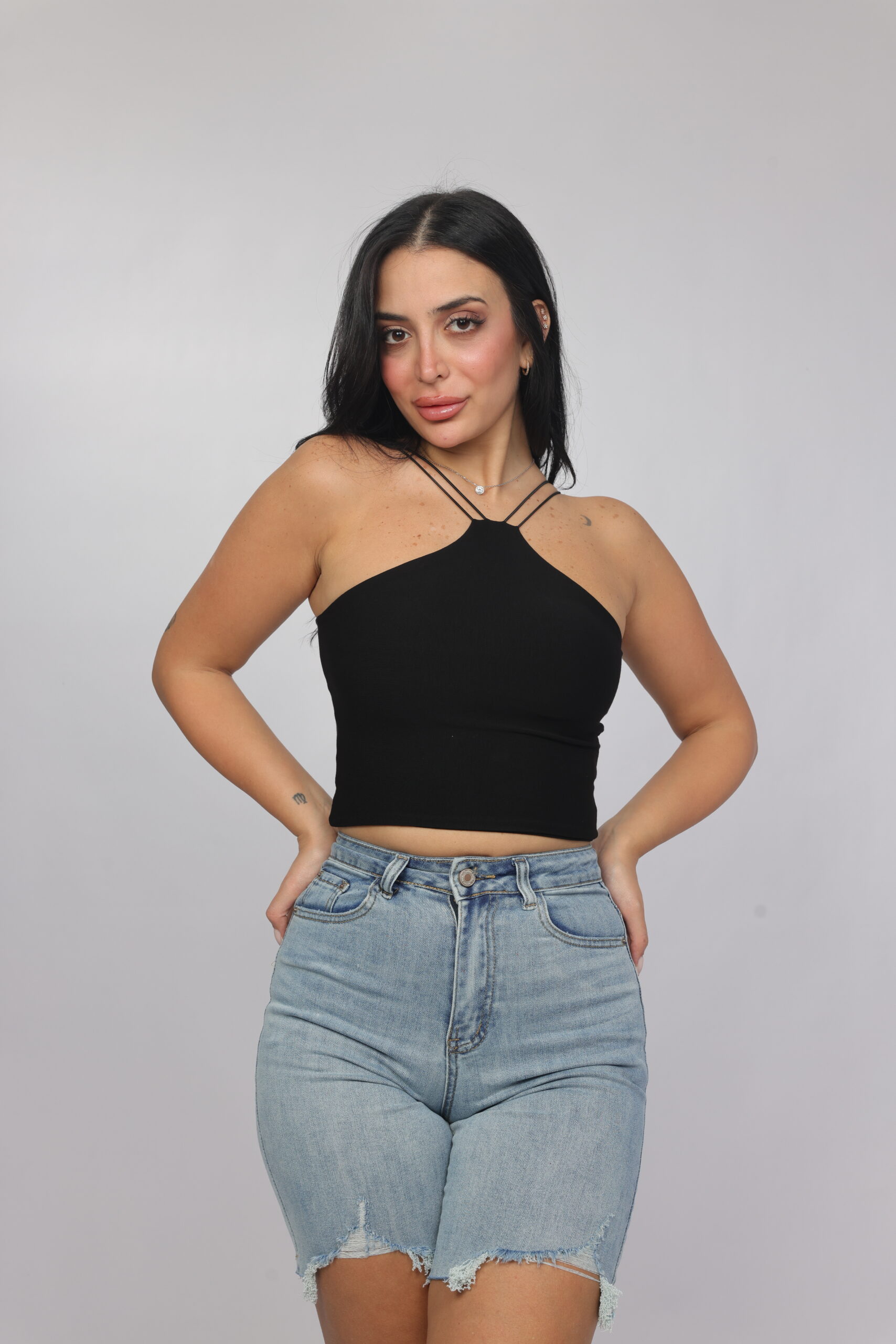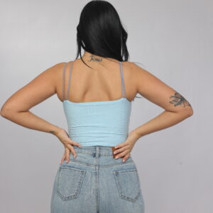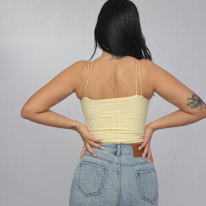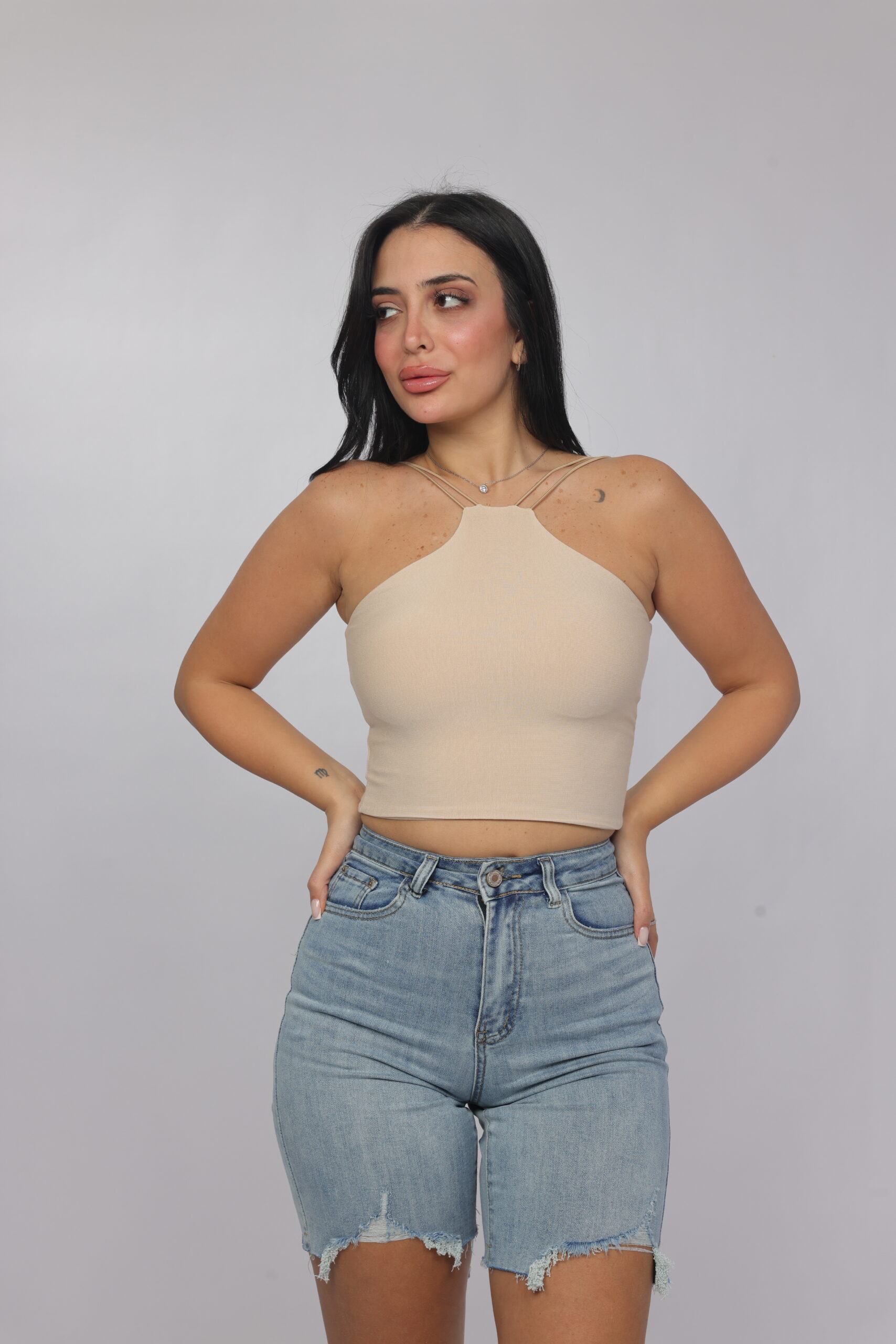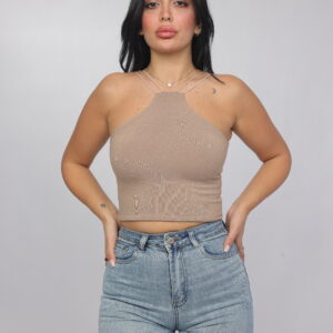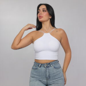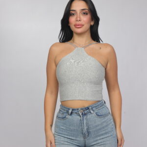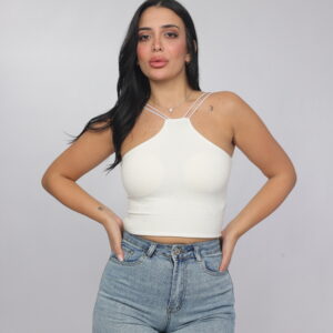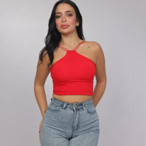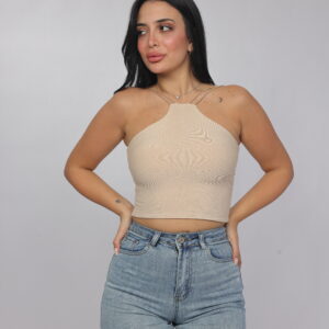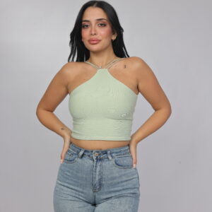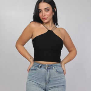 Elevate your summer essentials with this sleek cross-strap halter crop top. Designed with a high neckline and delicate double straps that frame the shoulders beautifully, this piece delivers a modern, flattering silhouette. The fitted cut enhances the shape while keeping the look minimal and chic — perfect for pairing with denim, skirts, or high-waisted trousers.
