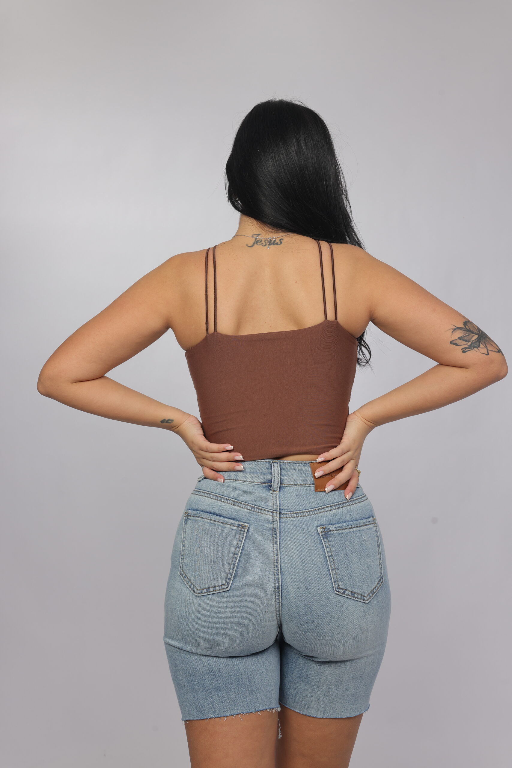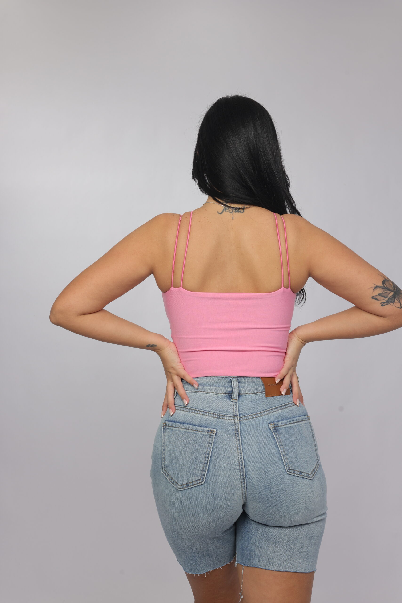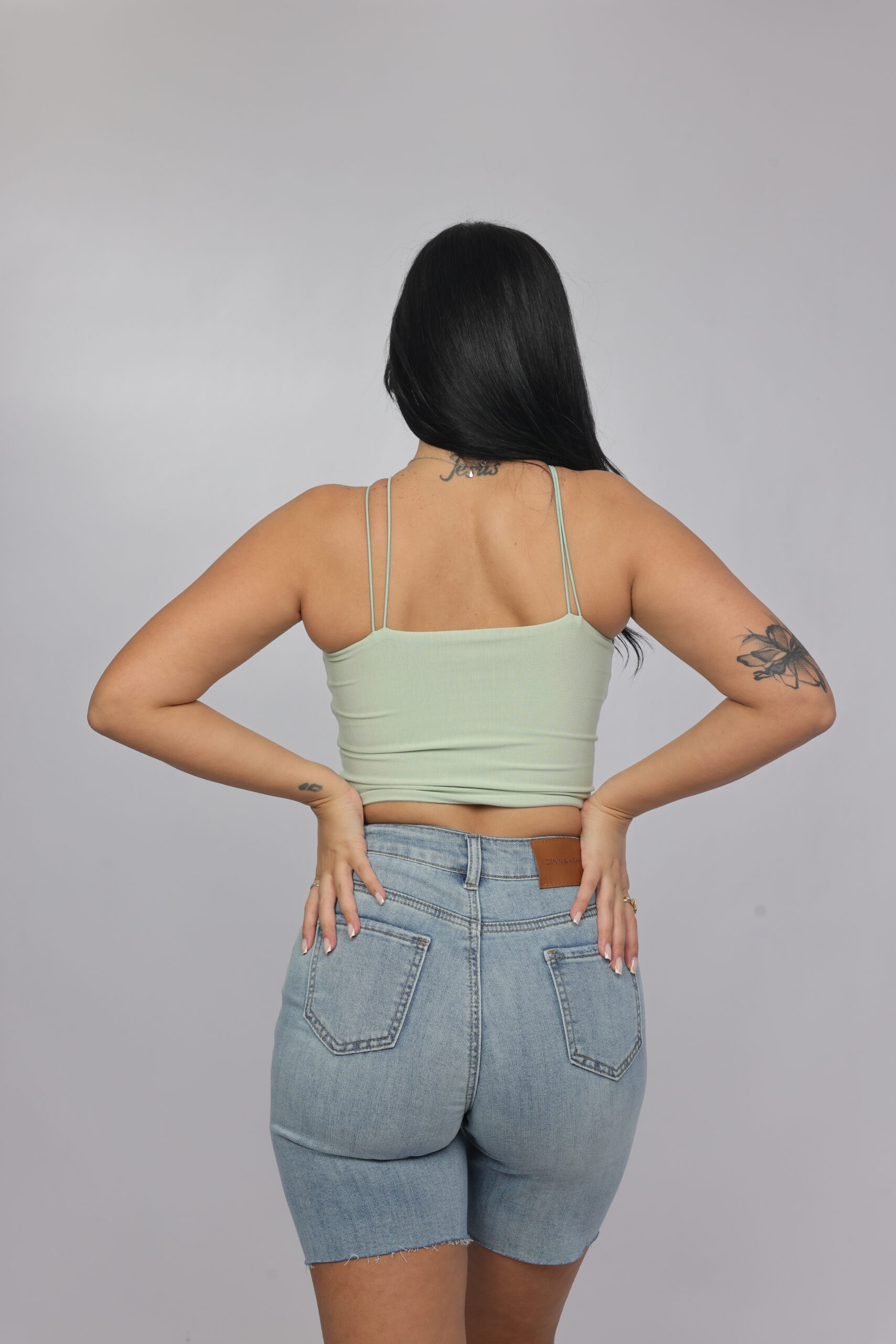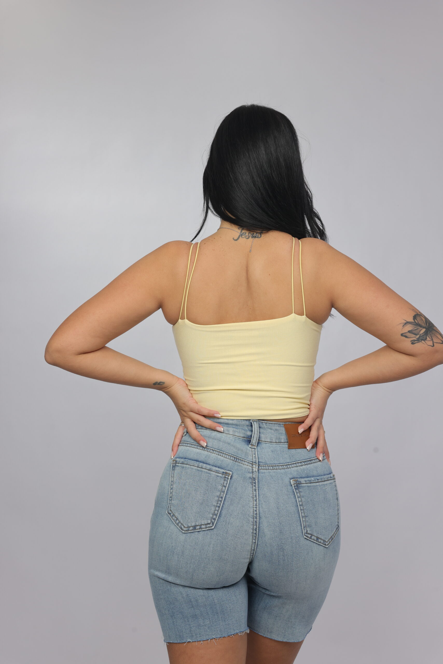 Elevate your summer essentials with this sleek cross-strap halter crop top. Designed with a high neckline and delicate double straps that frame the shoulders beautifully, this piece delivers a modern, flattering silhouette. The fitted cut enhances the shape while keeping the look minimal and chic — perfect for pairing with denim, skirts, or high-waisted trousers.