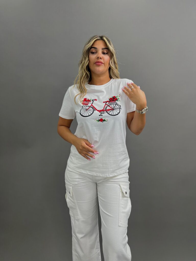 Added to your favoritesSaleWhite Bicycle Graphic Tee19.50 $ Original price was: 19.50 $.5.50 $Current price is: 5.50 $.Size: M - L, S - MColor: WhiteBlack