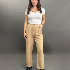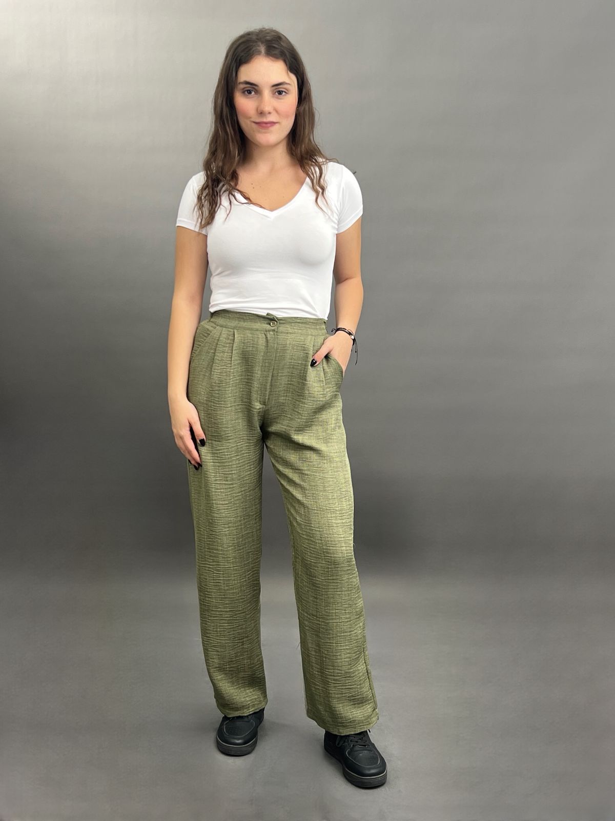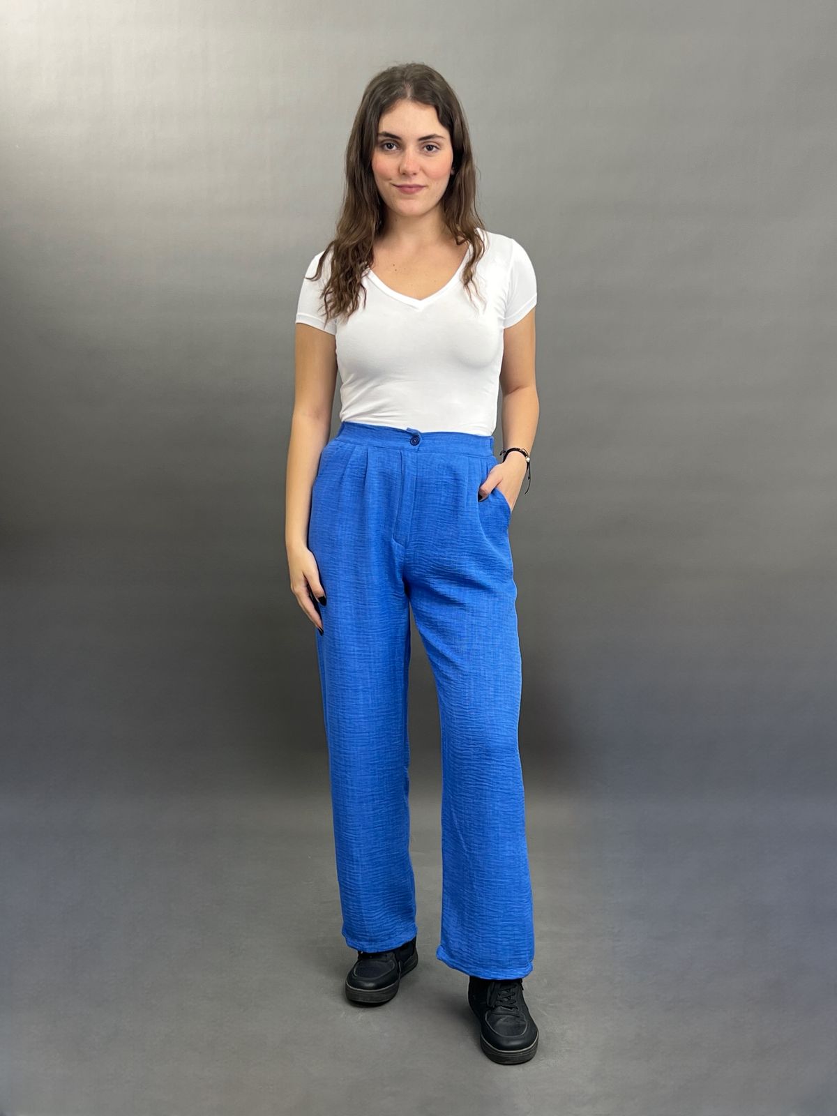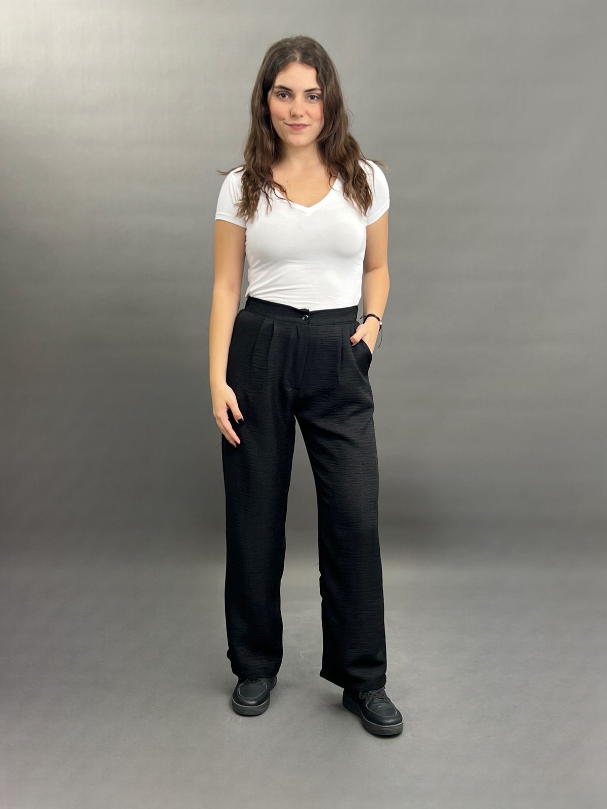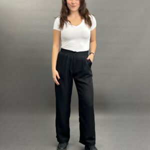 These sophisticated wide-leg trousers offer a flowing silhouette and a comfortable fit. Featuring a classic high-waisted design with side pockets, they are perfect for both professional and stylish casual ensembles.