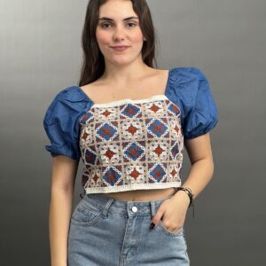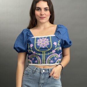 Embroidered Peasant Crop Top