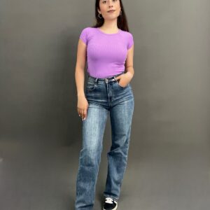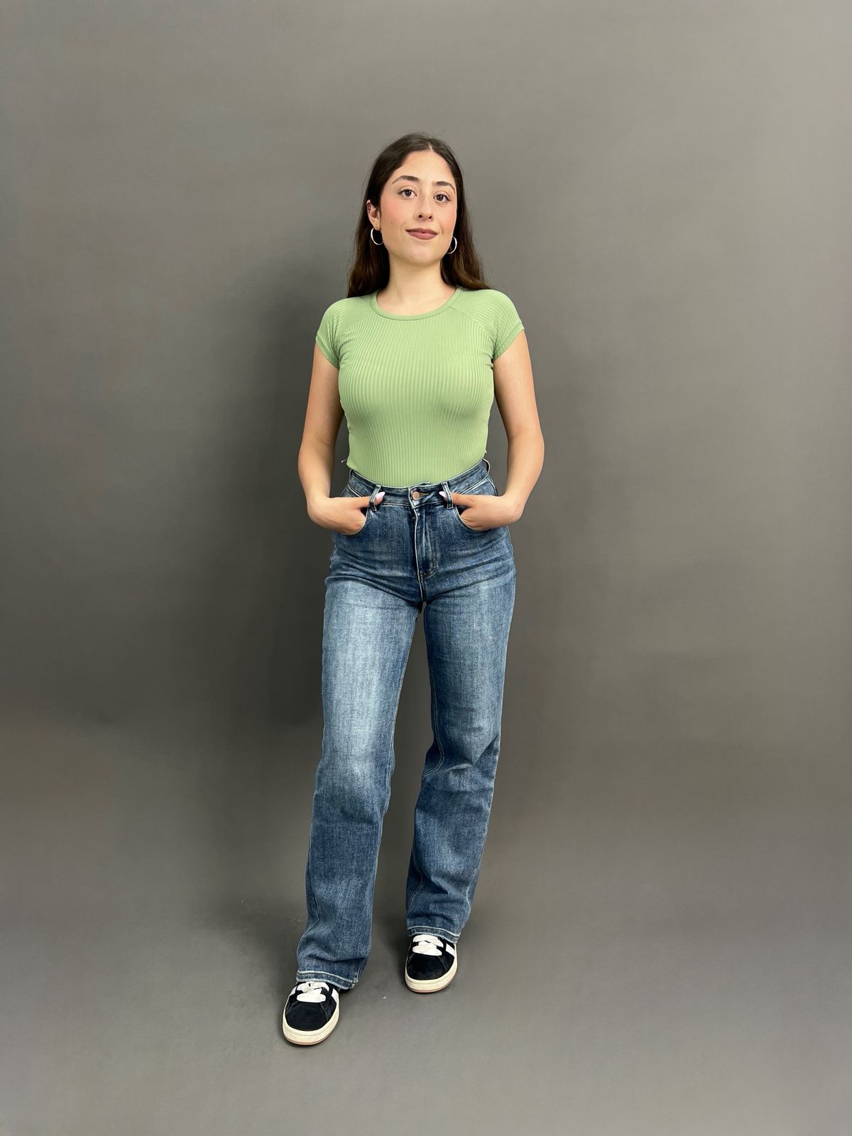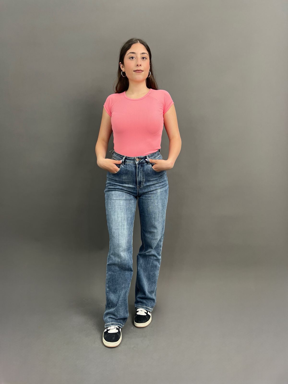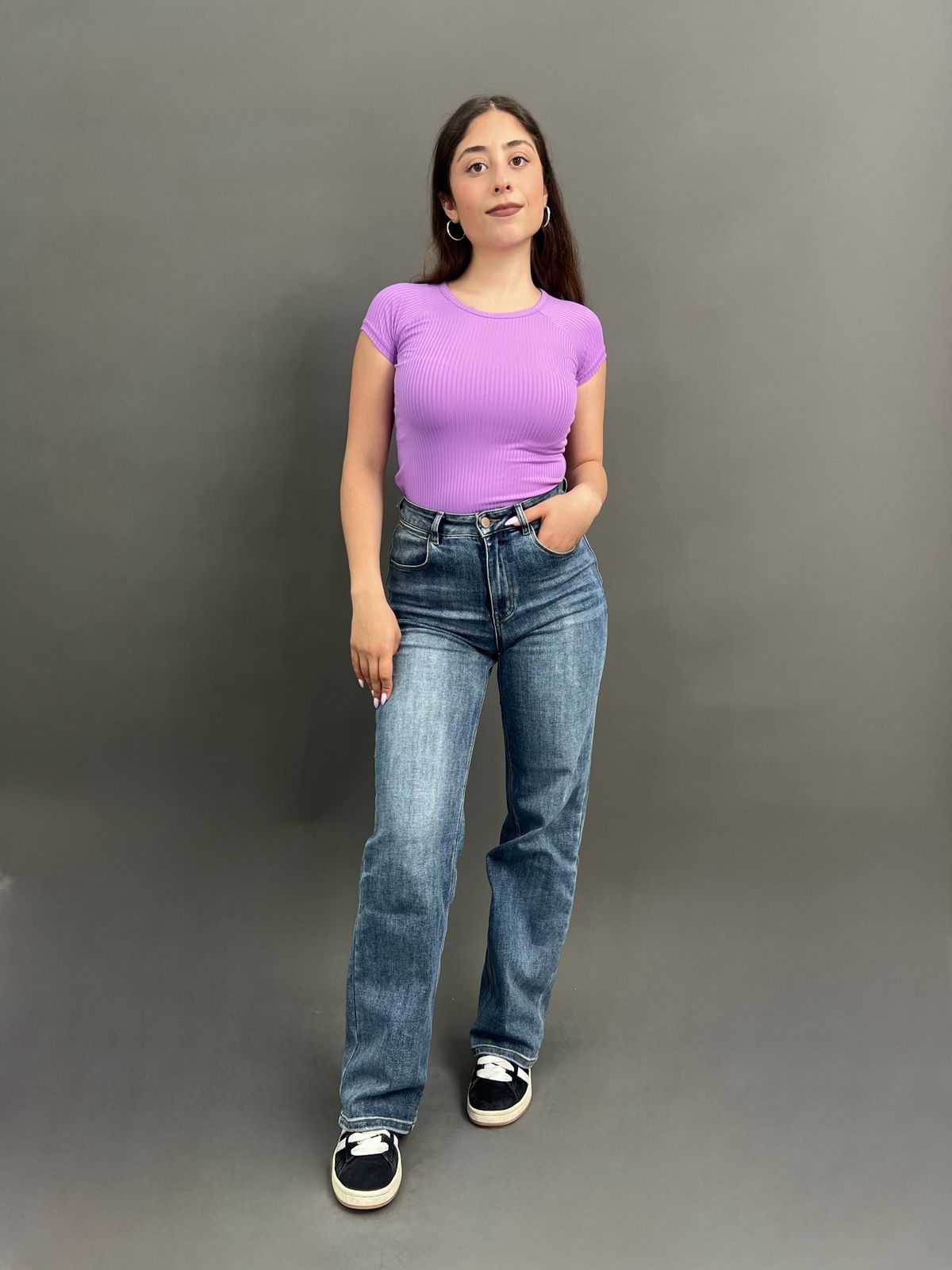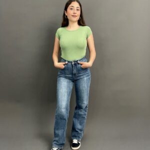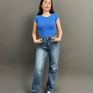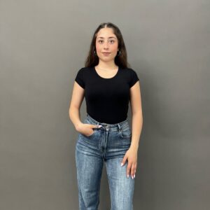 A sleek and stretchy ribbed top featuring a flattering fitted silhouette and classic cap sleeves. Perfect for layering or wearing solo for a clean, casual look. Fit: True To Size Model Size: S