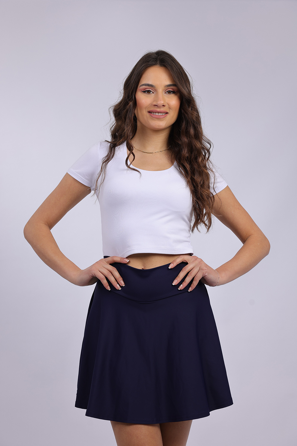A playful and versatile piece designed for everyday comfort and style. With its flared silhouette and flattering high-waist fit, this skirt offers ease of movement while keeping a clean and modern look.