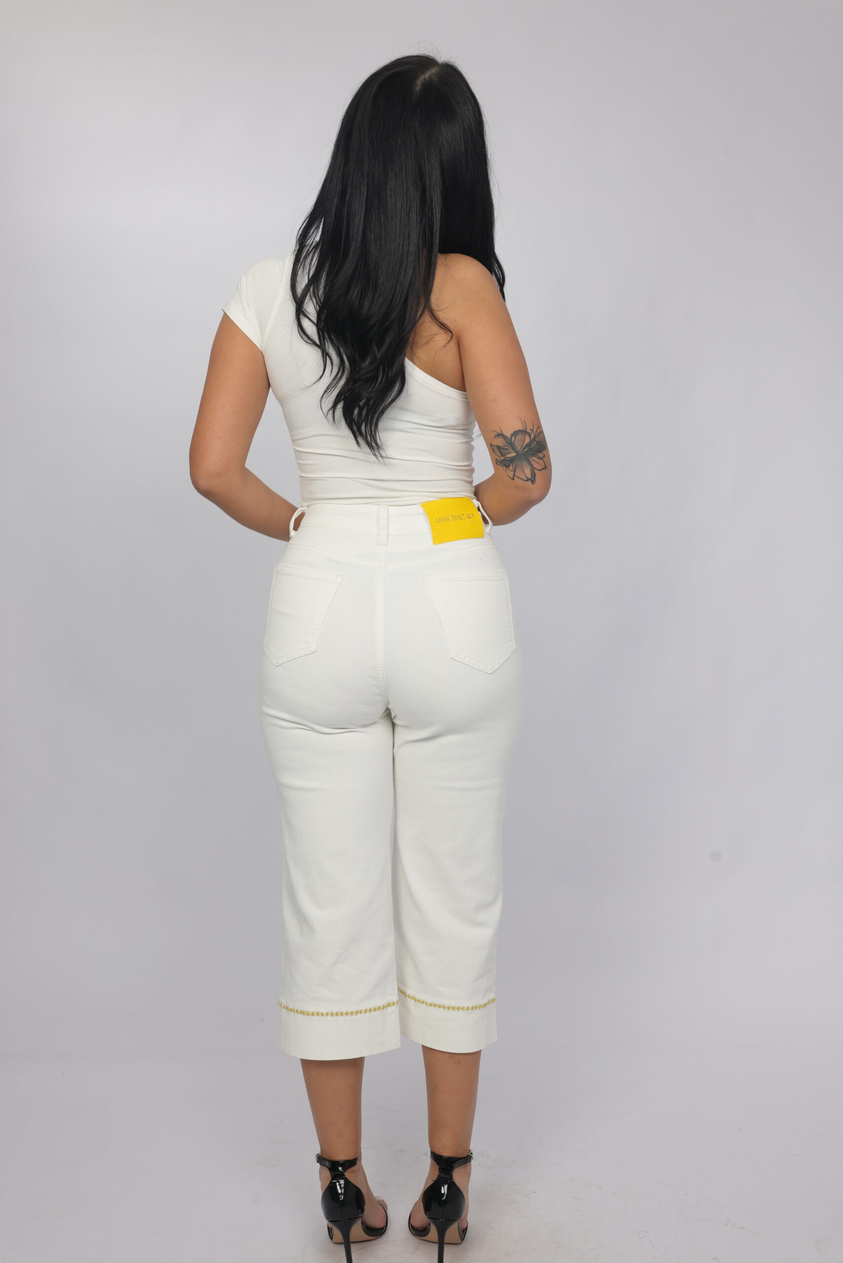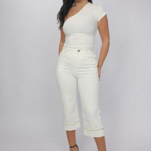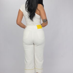 Chic and polished, these high-waist cropped pants are designed to elevate your everyday wardrobe. Featuring a clean straight-leg cut and subtle gold embroidered detailing at the hem, they bring a refined touch to a classic silhouette. Perfect for styling with heels for a sophisticated look or sneakers for effortless elegance.