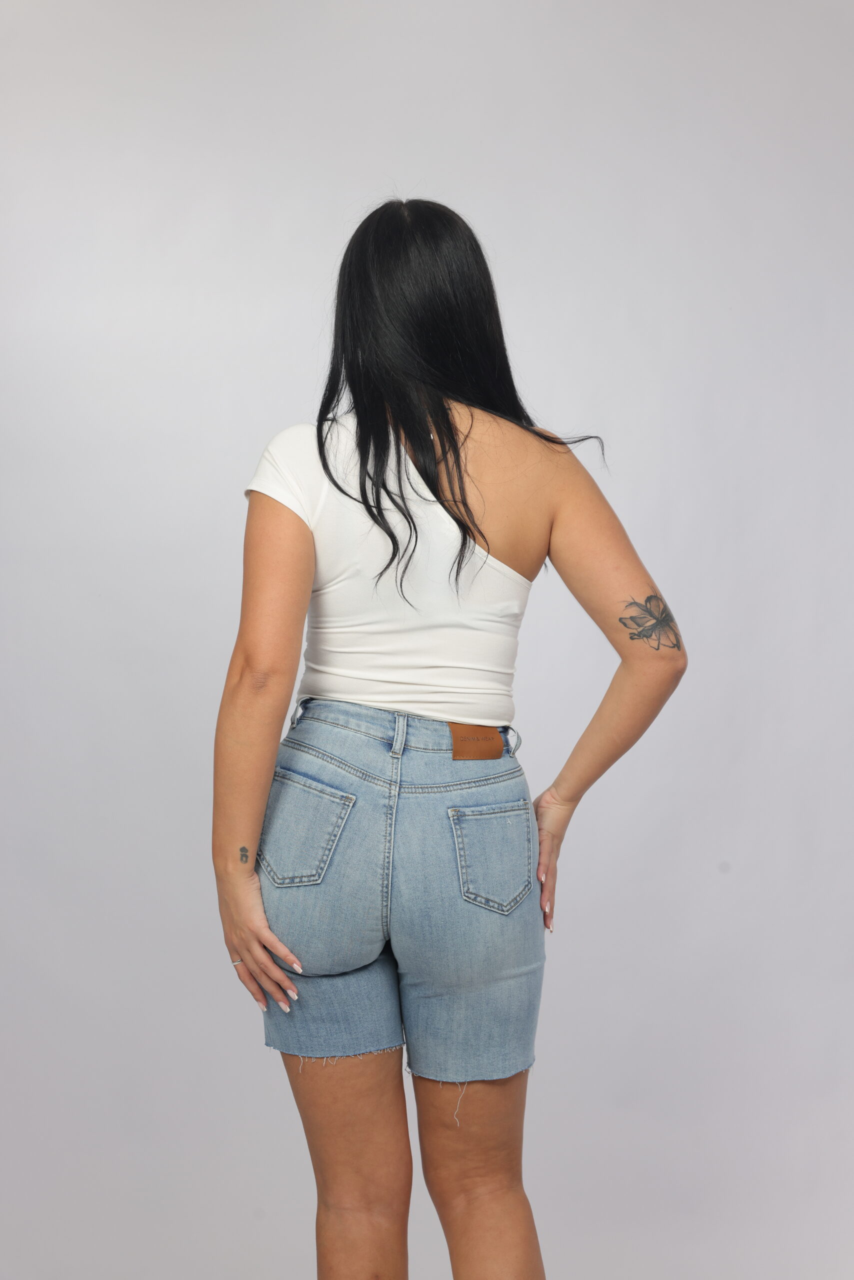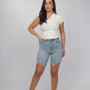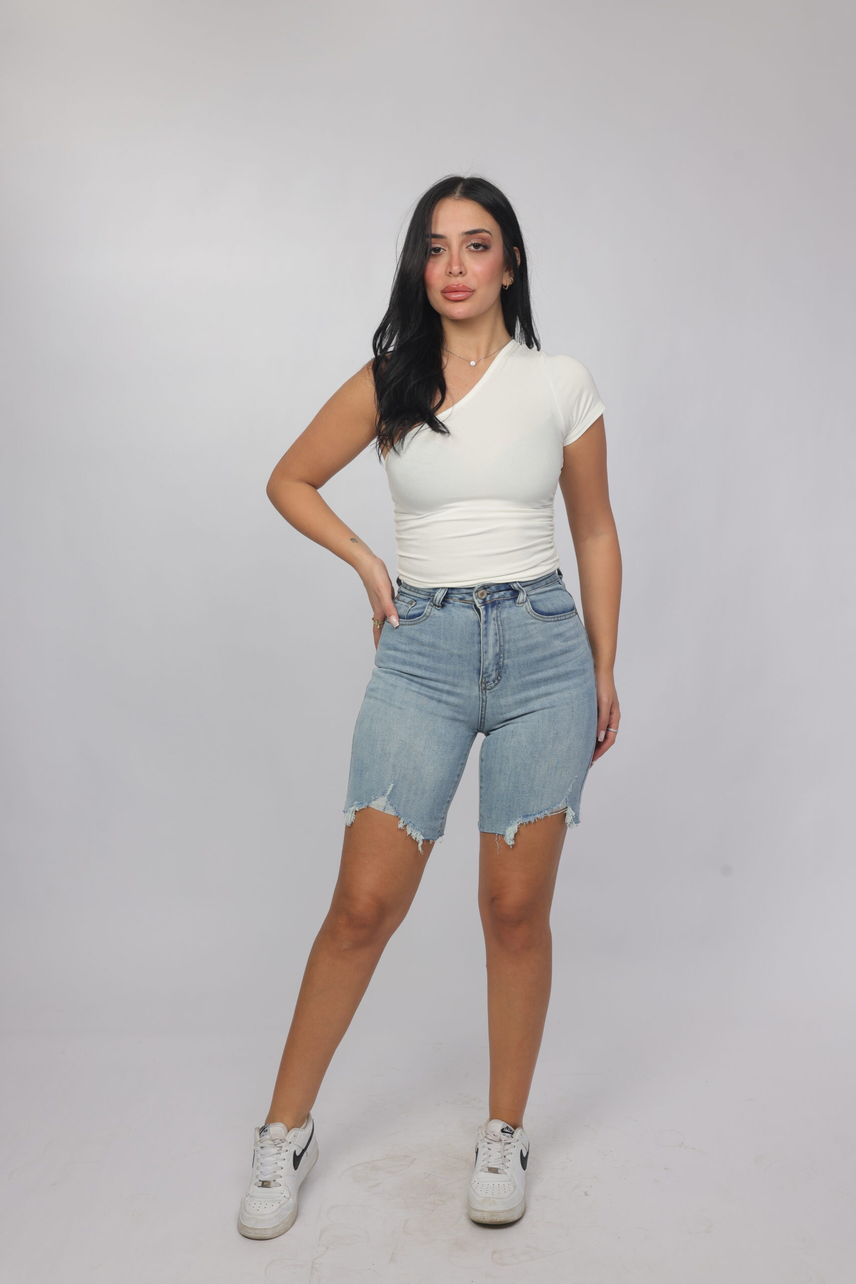 A casual essential designed with a flattering high-waist fit and a modern raw hem finish. These denim shorts offer comfort and structure, making them perfect for everyday styling. Easy to pair with crop tops, basics, or oversized shirts for a relaxed yet trendy look.