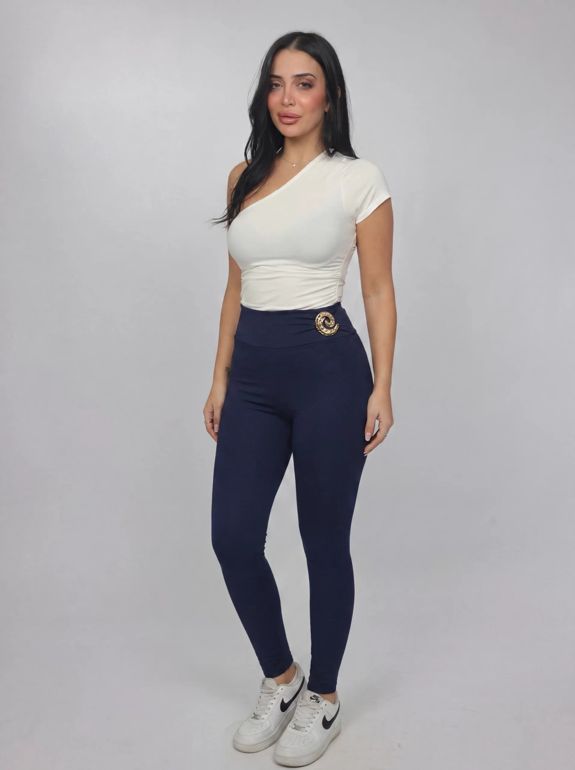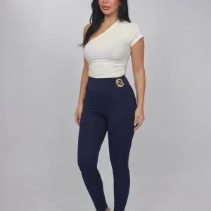 Sleek and form-fitting leggings designed to enhance your silhouette with a flattering high-waisted cut. Crafted for both comfort and style, they feature a smooth, second-skin feel and a statement gold detail at the waist for a refined touch. Perfect for everyday wear, from casual looks to elevated outfits.