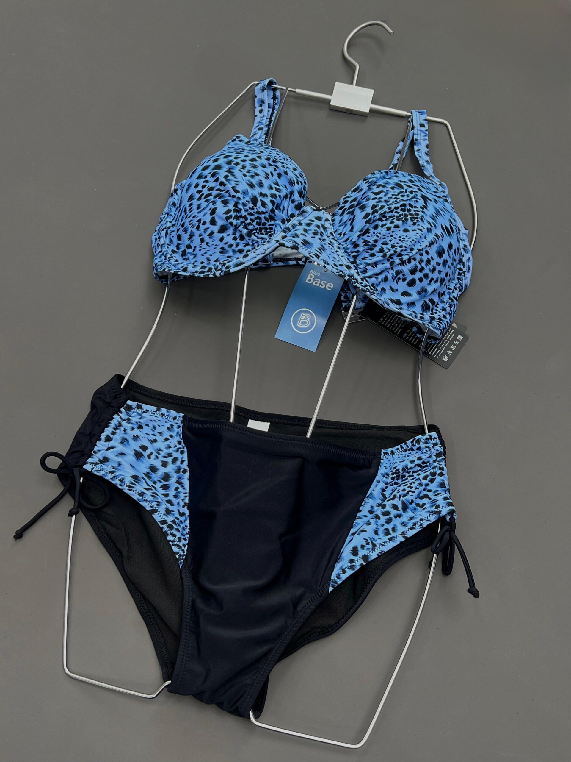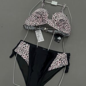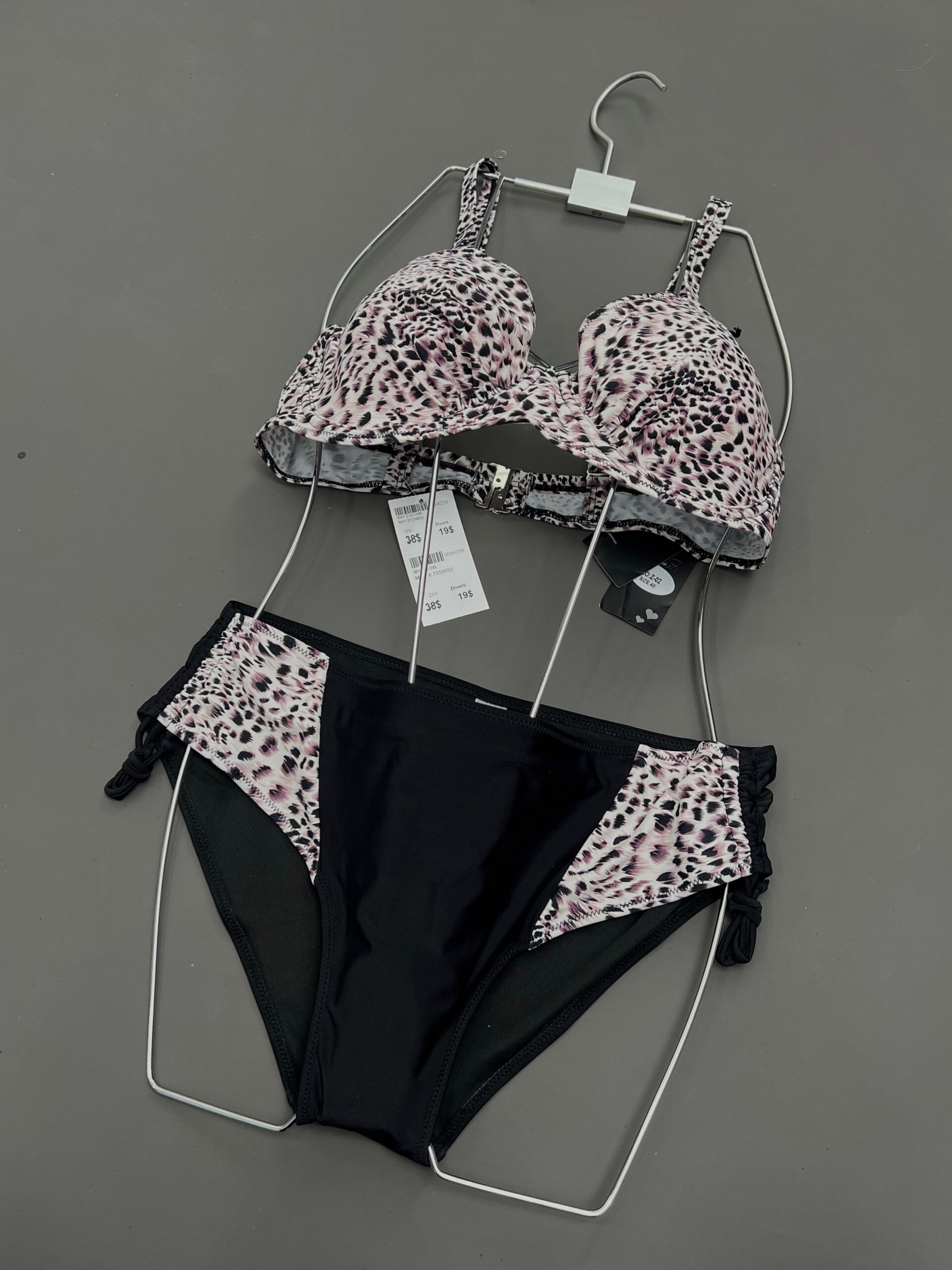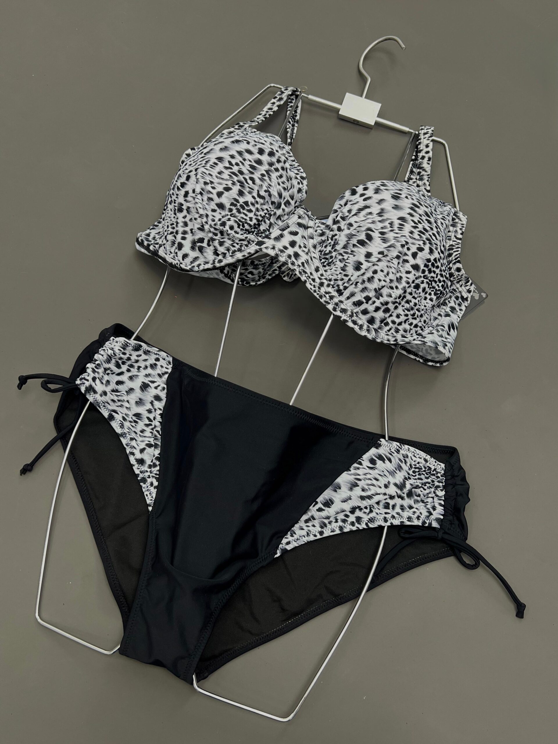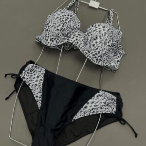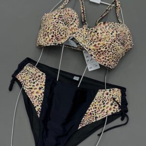 This two-piece swimsuit features a bold, organic-inspired print on the top and coordinating panels on the bottoms, creating a captivating and fashion-forward look. The design offers a blend of natural allure and modern style.