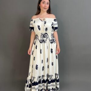 Turn heads with this stylish off-shoulder dress featuring eye-catching patterns that blend elegance and flair. Perfect for both casual outings and special occasions, its flattering neckline and vibrant design offer a chic, feminine touch.
