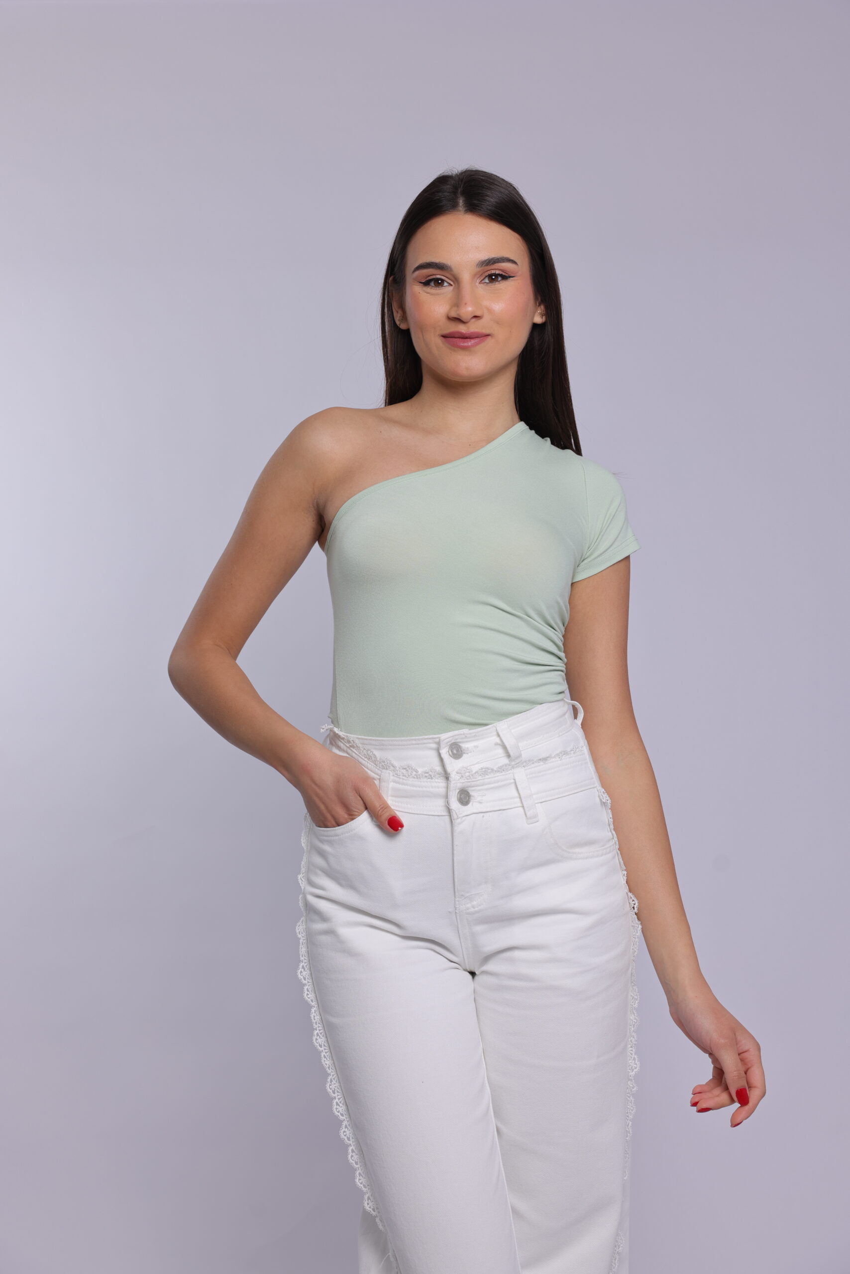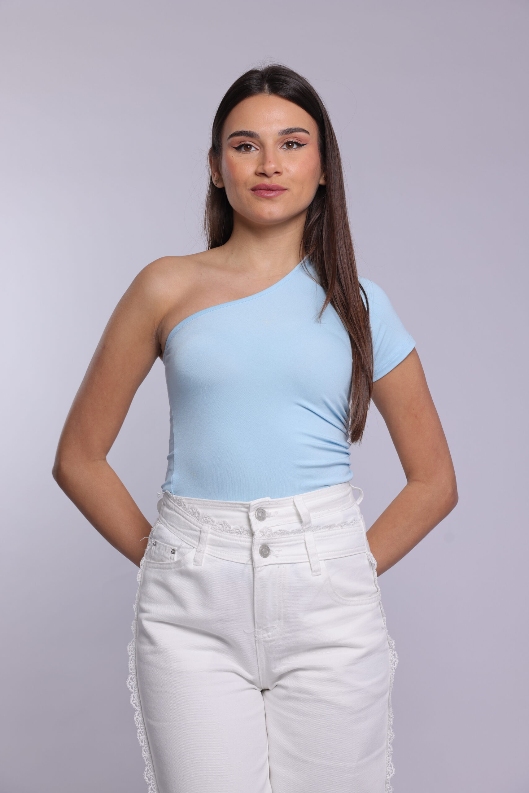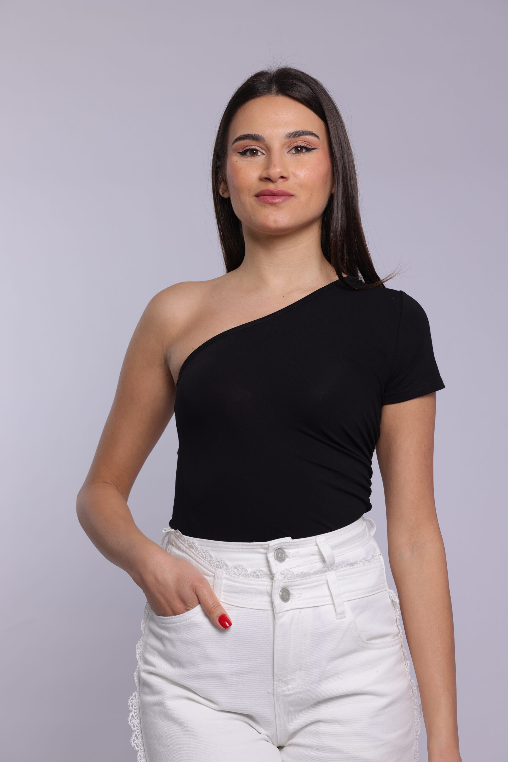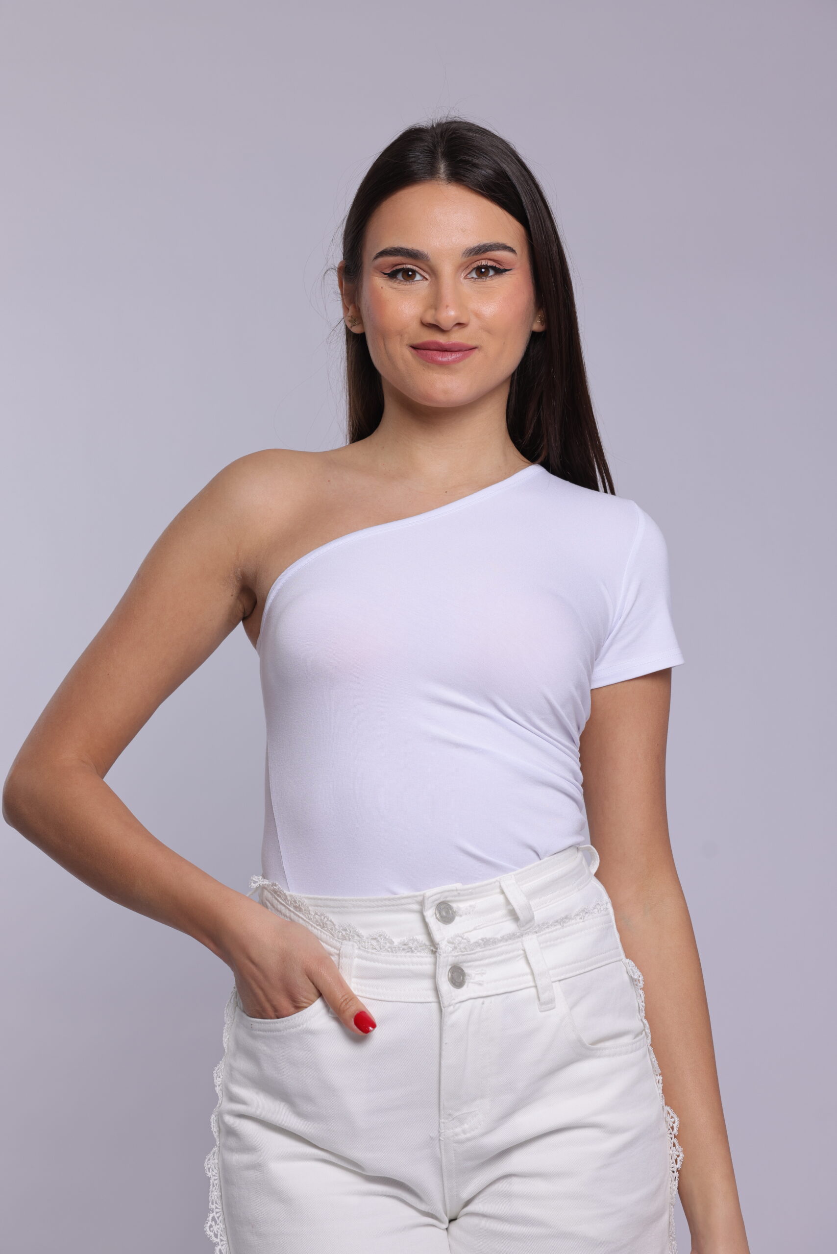 Sleek and effortlessly stylish 🤍 This one-shoulder top features a modern asymmetrical neckline that adds a bold, feminine touch. Designed with soft stretch fabric for a flattering fit, it’s perfect for elevating both casual and evening looks.