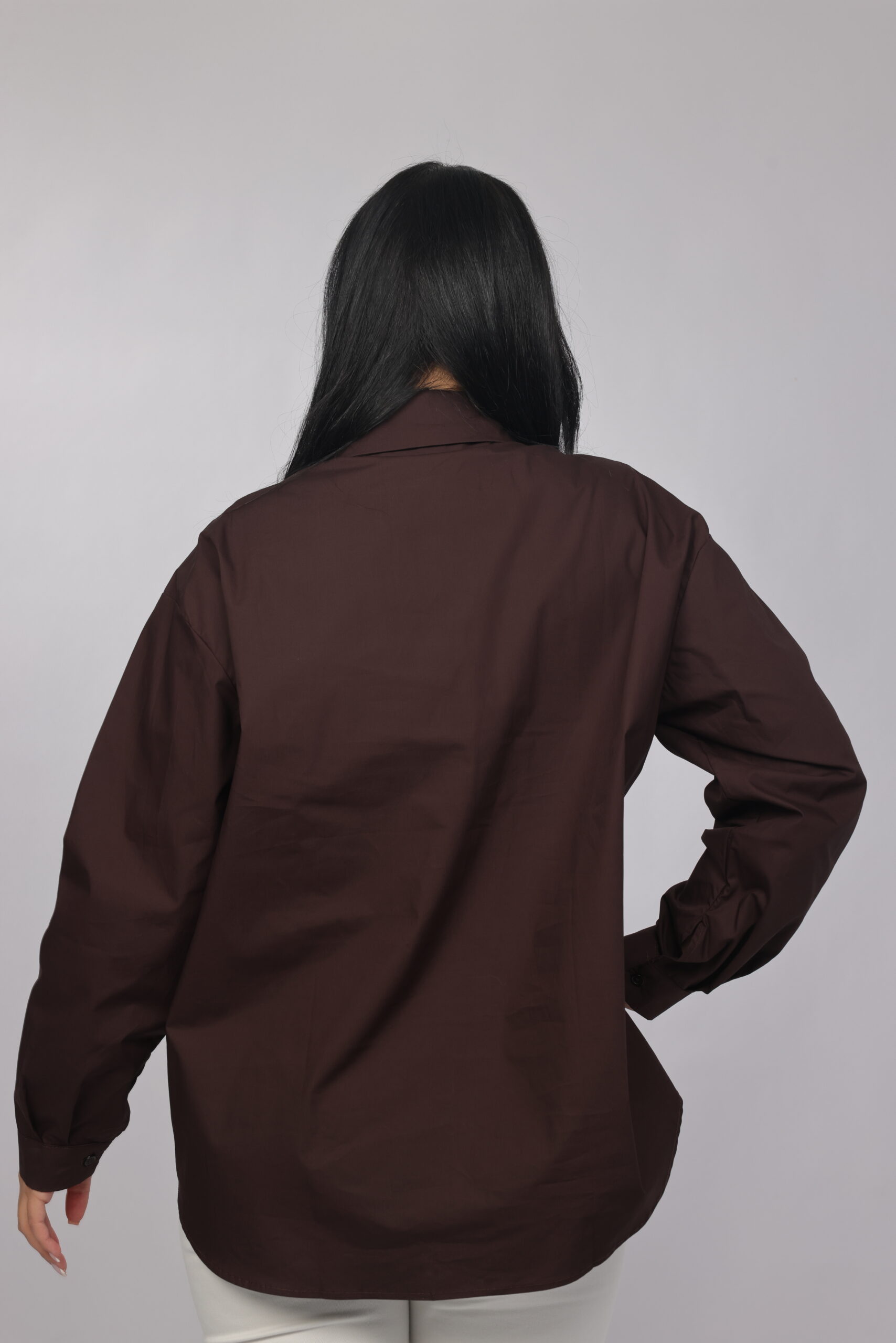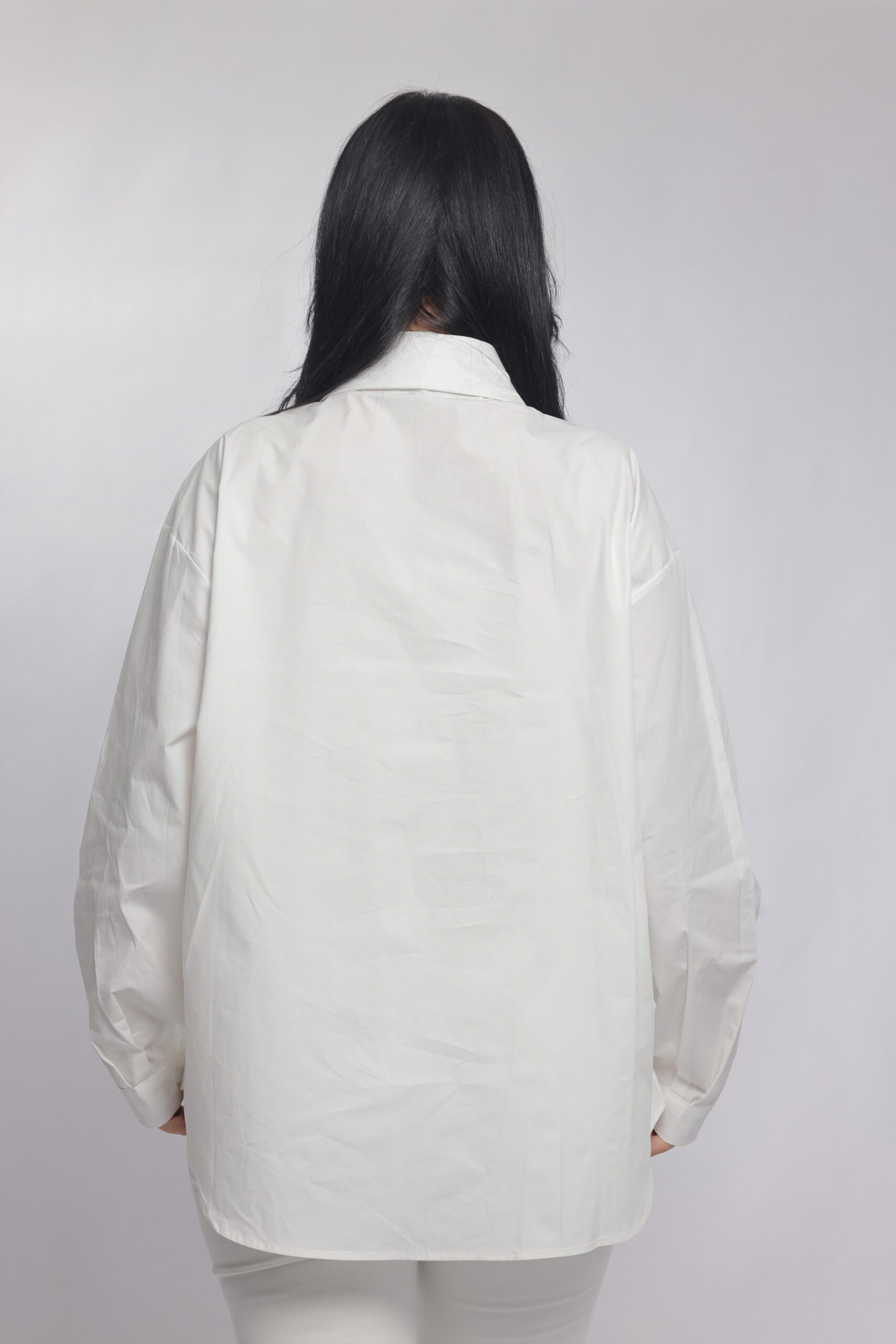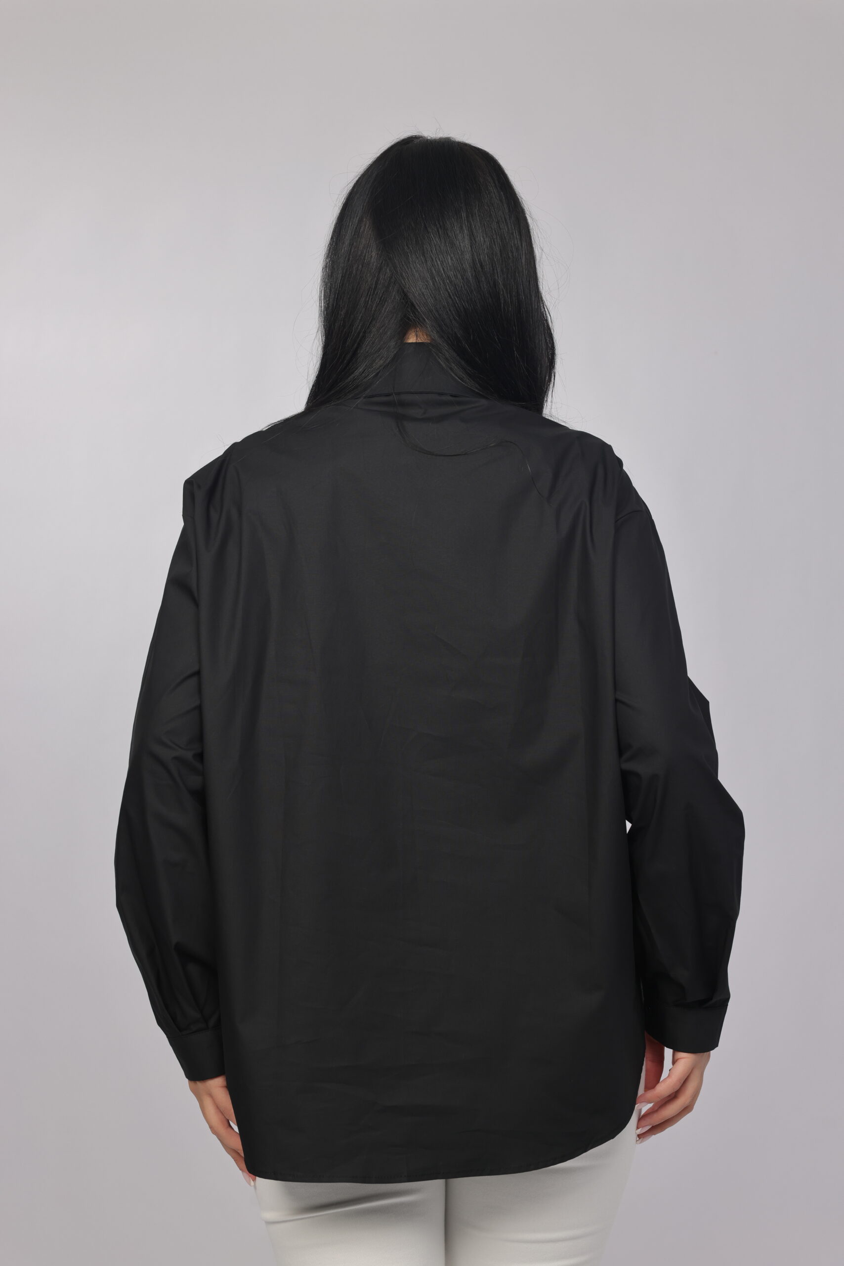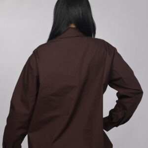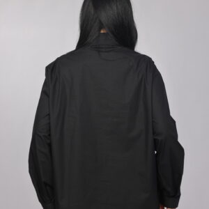 A bold twist on a classic silhouette. This oversized chemise combines a structured collar and relaxed fit with eye-catching decorative details along the front, giving it a modern statement look. Perfect for styling with tailored pants or denim for a chic, elevated outfit.