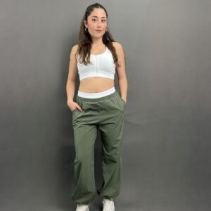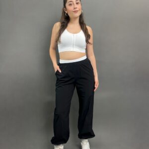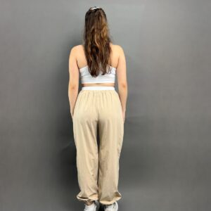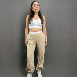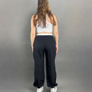 Cargo-style parachute pants featuring a relaxed fit and standout white detailing at the waist for a bold, modern finish. Fit: True To Size Model Size: S