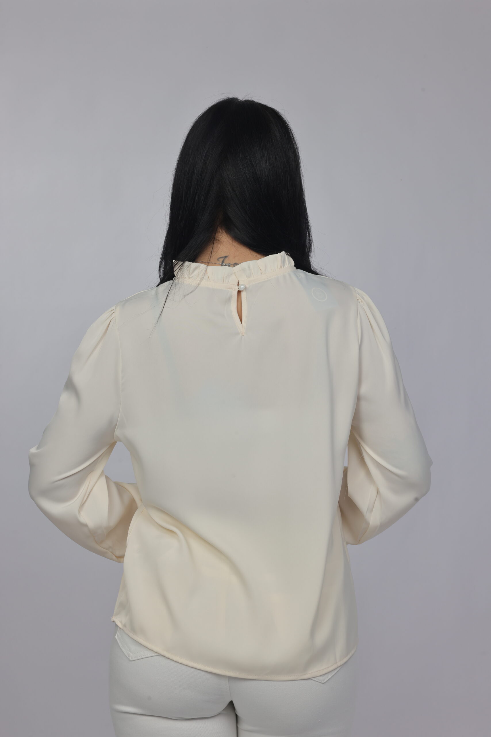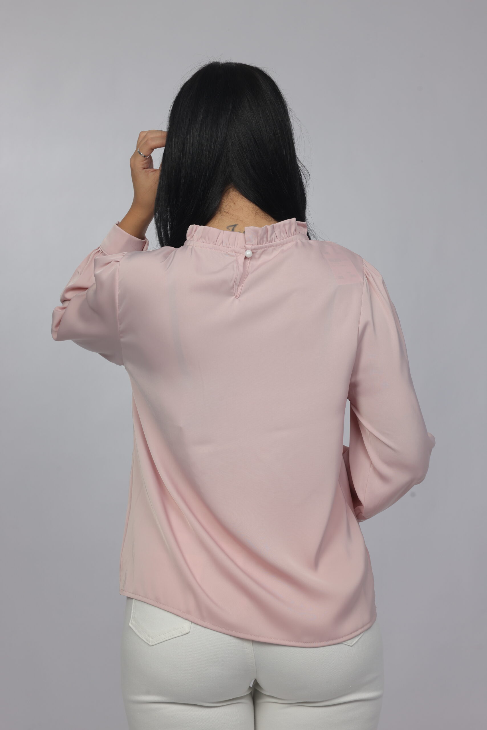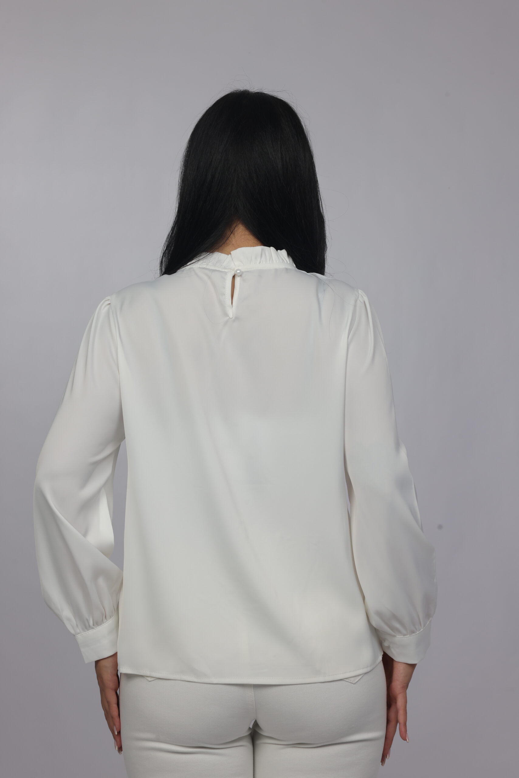 A timeless and refined blouse designed with a soft draped silhouette and delicate pearl detailing along the neckline. This piece combines simplicity with elegance, making it perfect for office wear, formal occasions, or polished everyday styling.