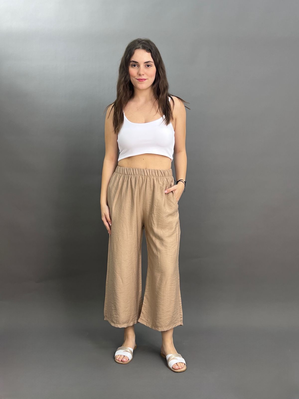 Pleated Wide-Leg Cropped Trousers