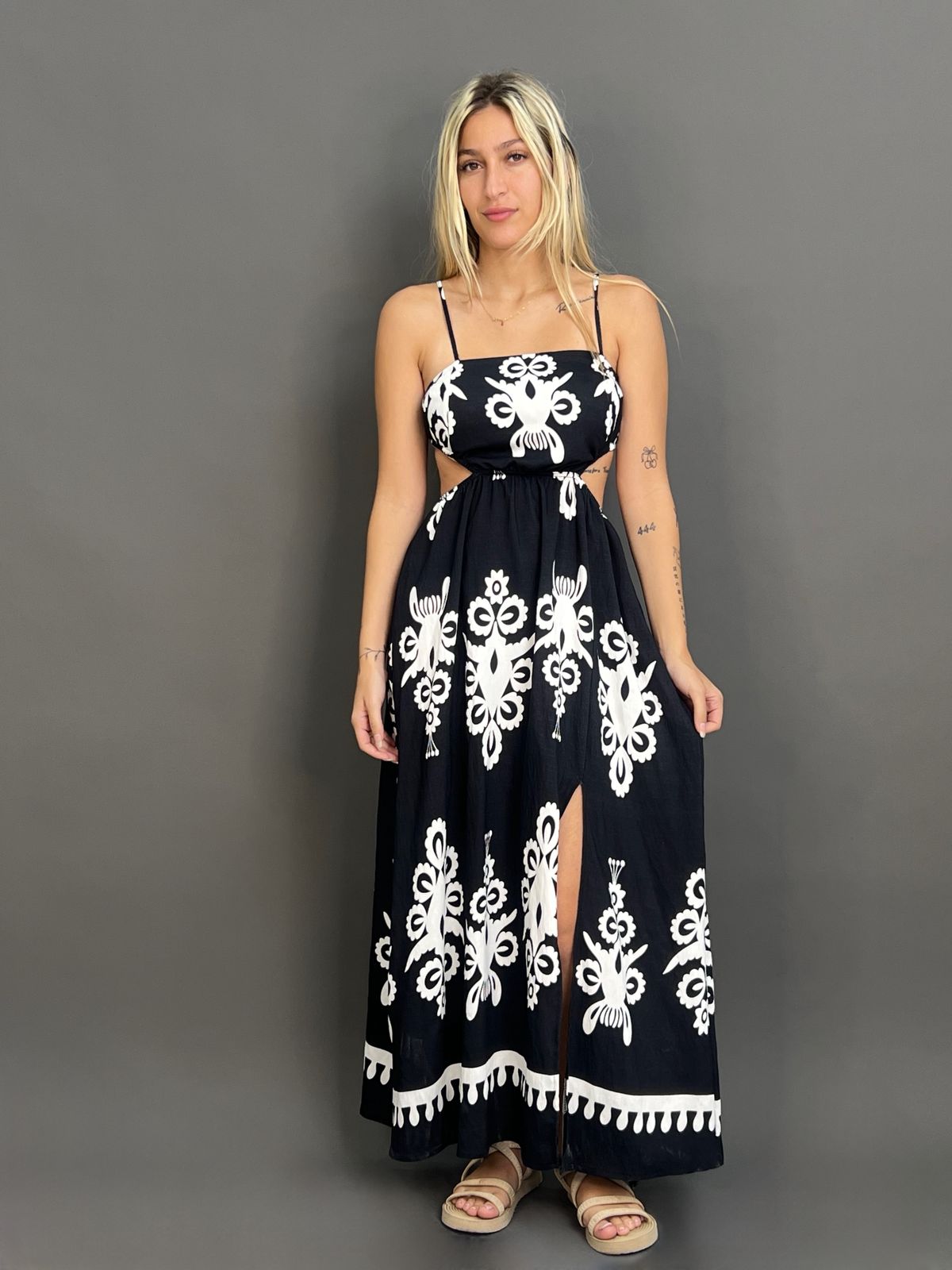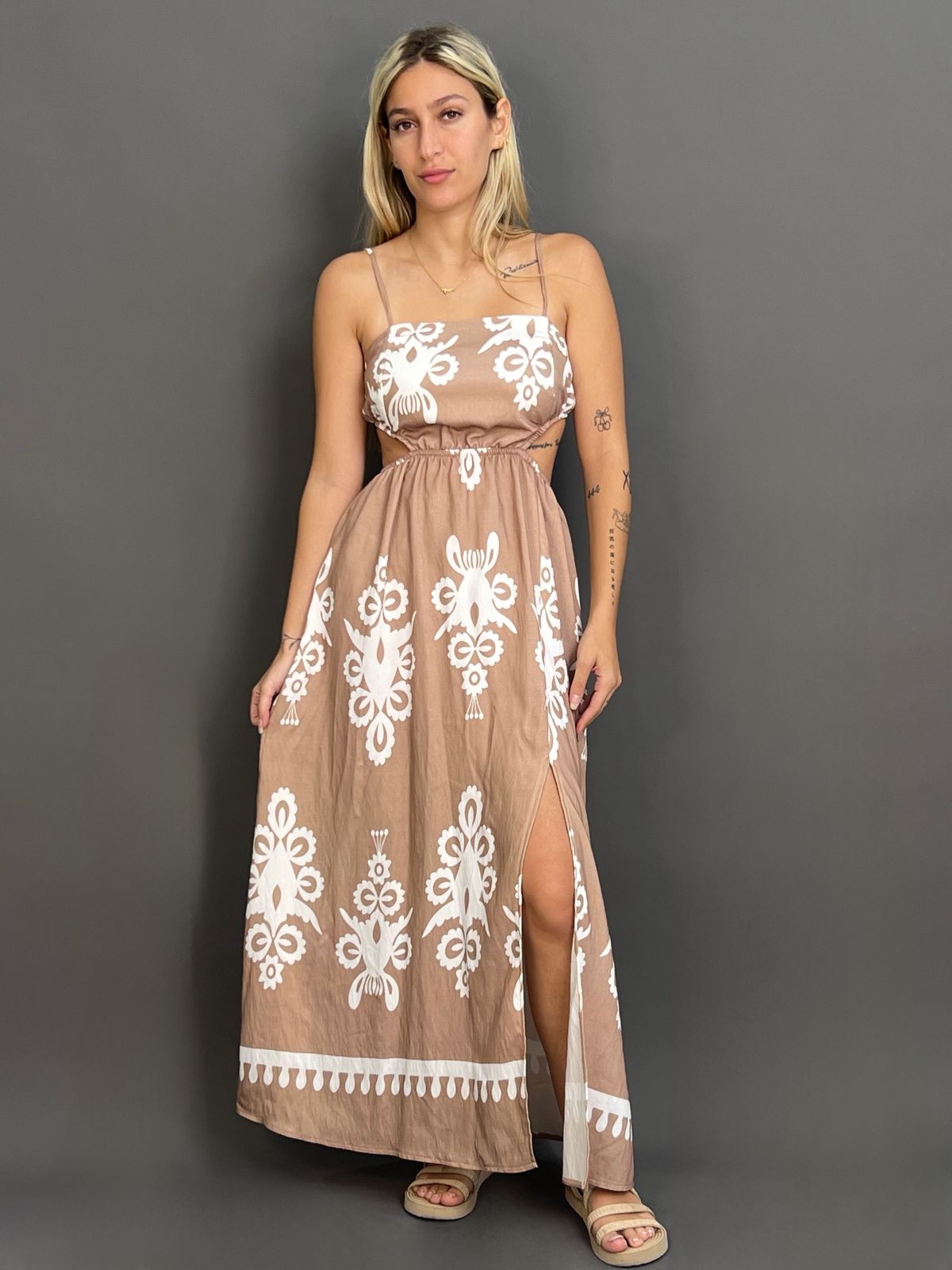 Printed Cut-Out Maxi Dress