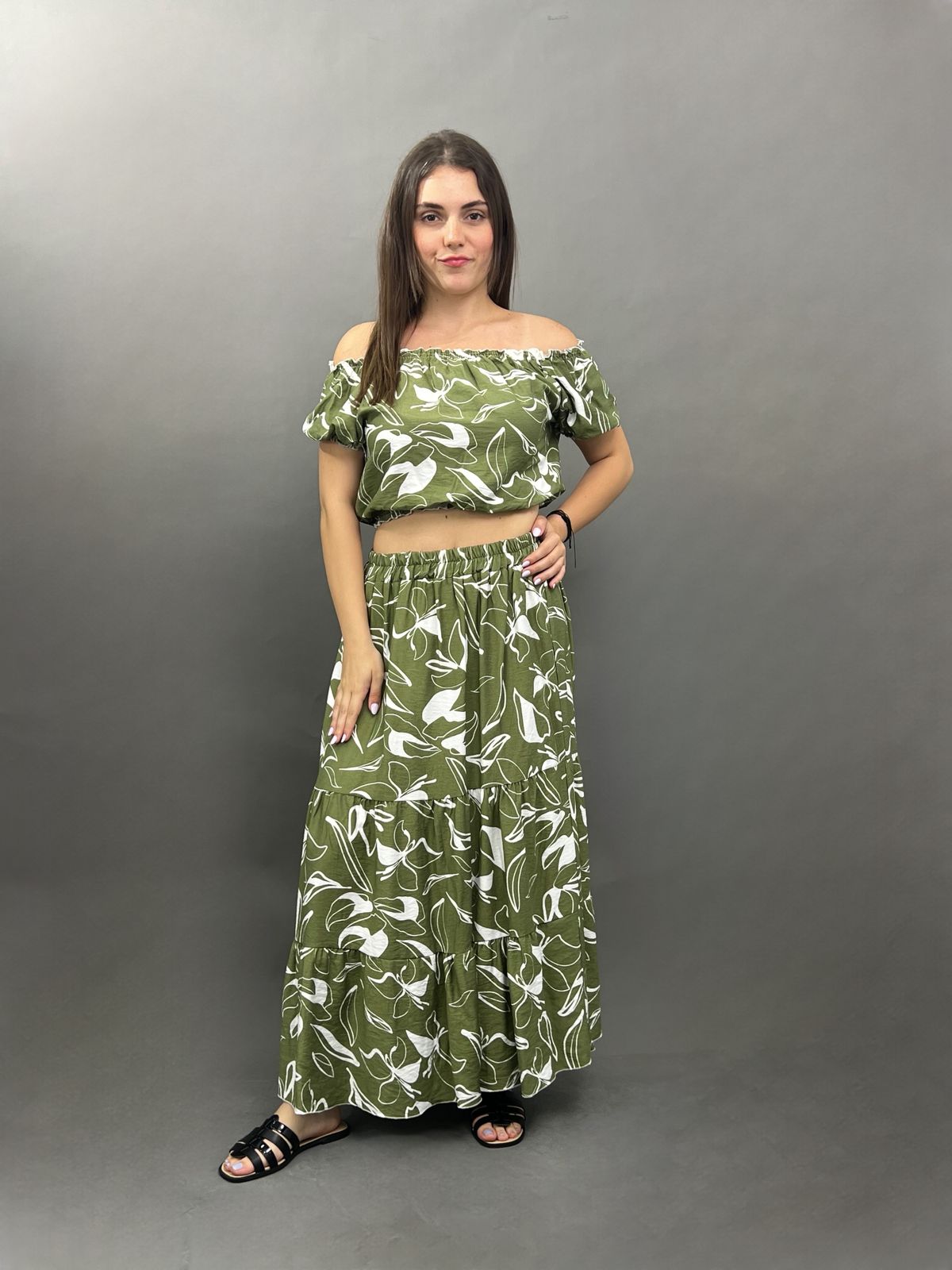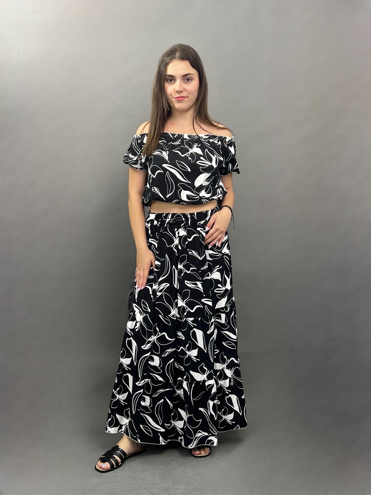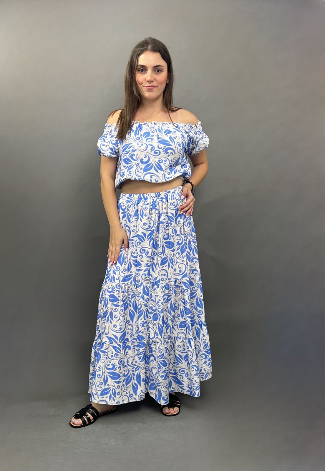 Printed Off-Shoulder Co-ord Set
