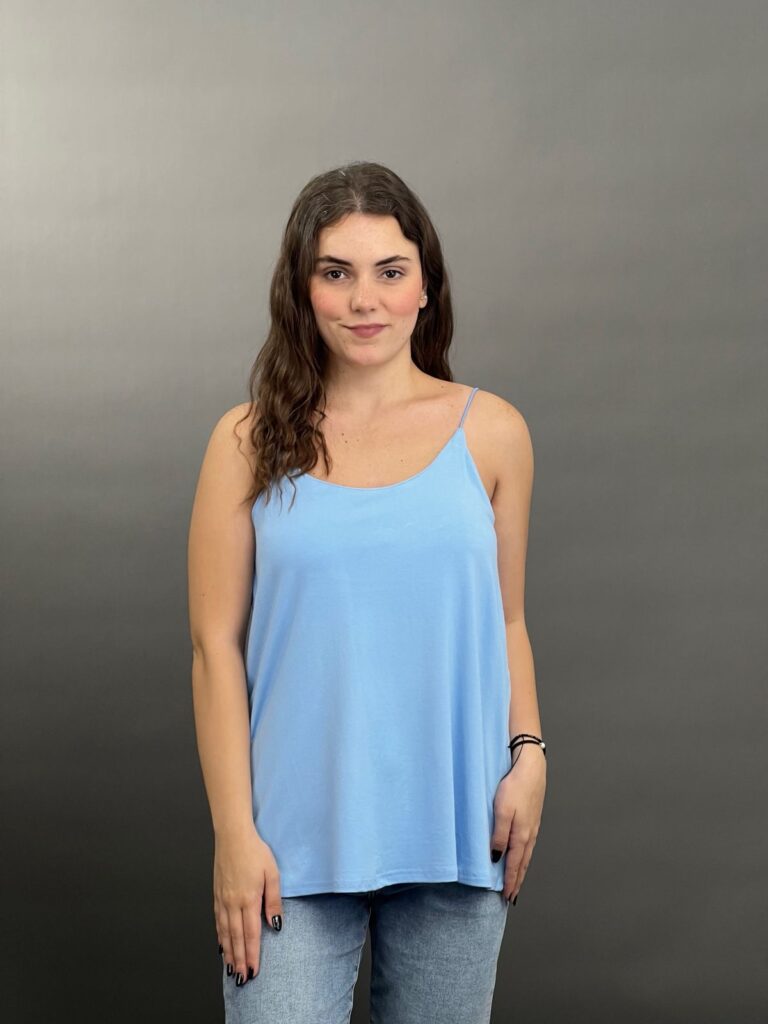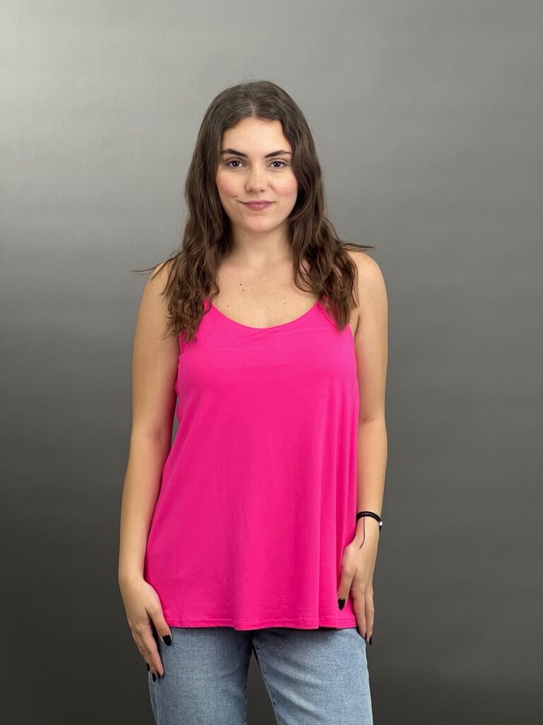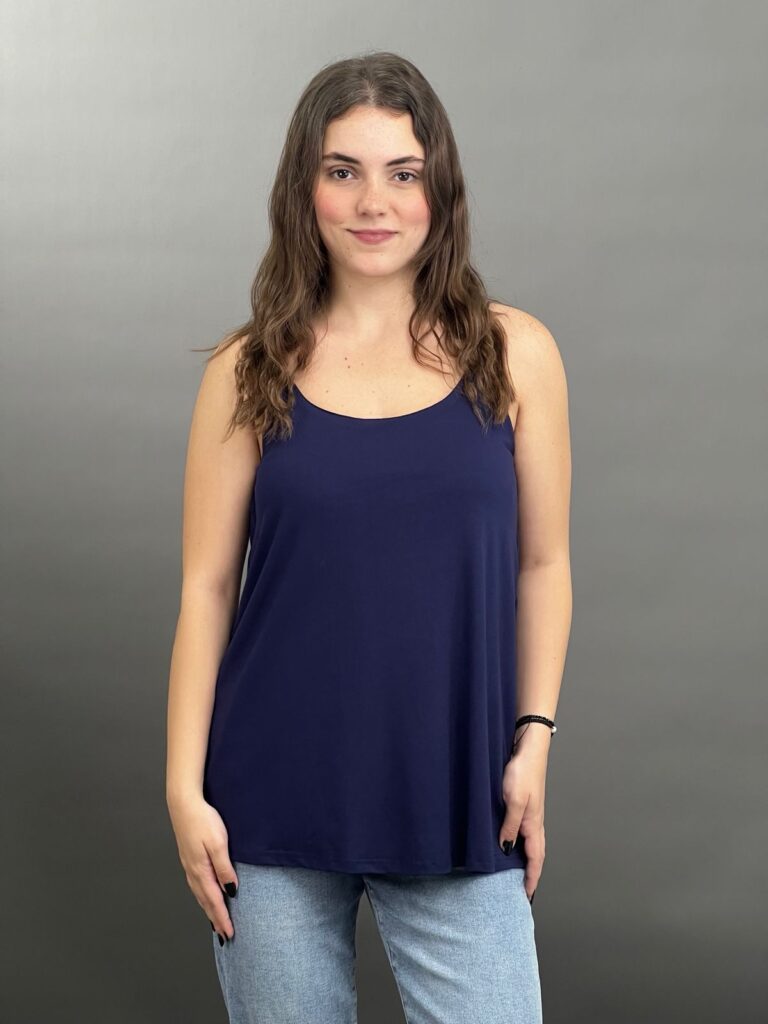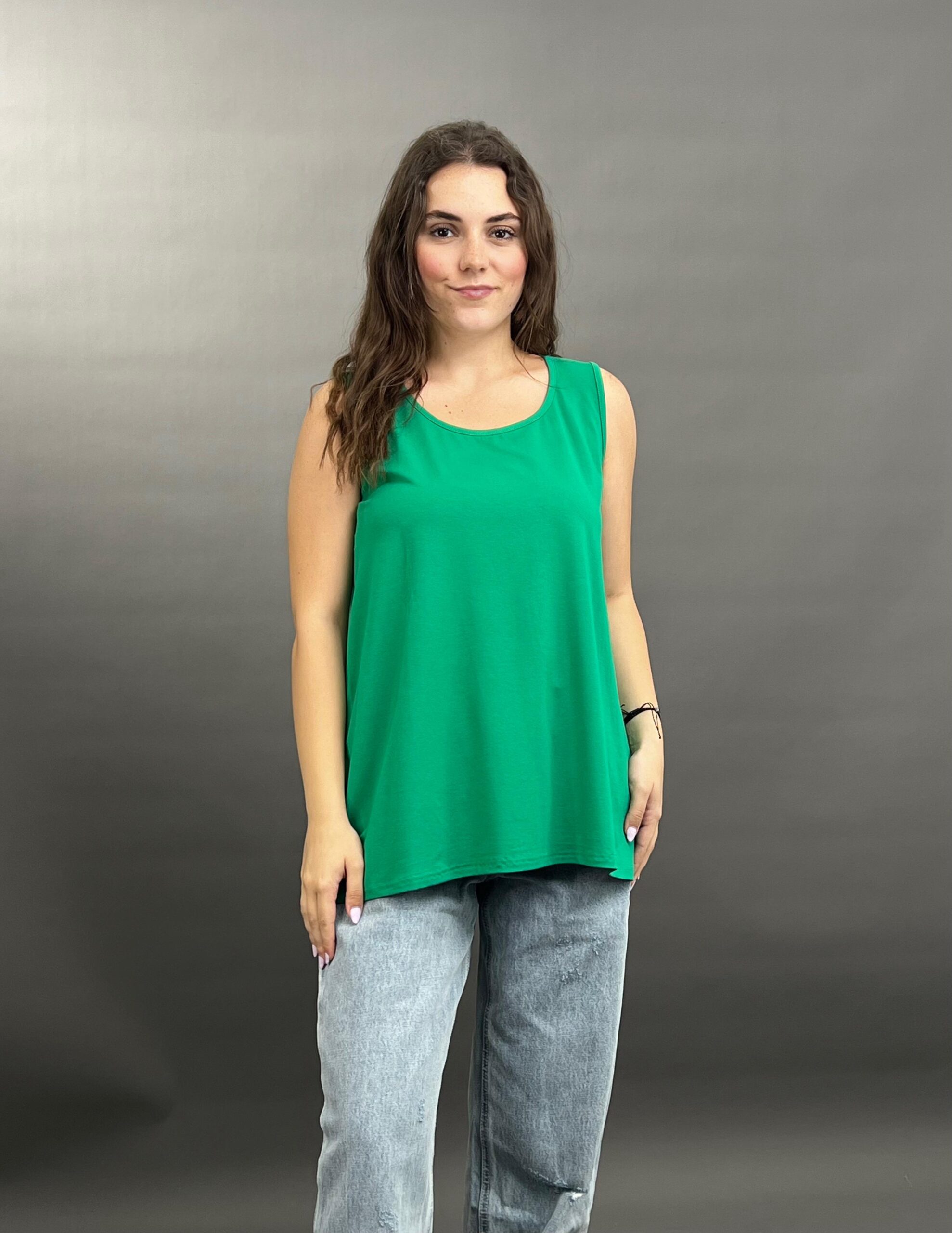 This comfortable tank top features a flattering scoop neckline and a relaxed, flowing fit. Its versatile design makes it an essential staple for layering or wearing on its own during warmer days.