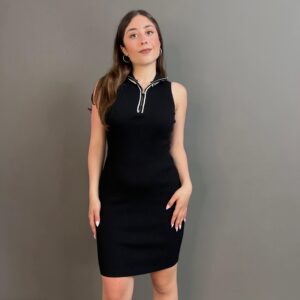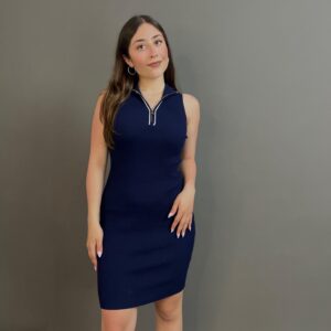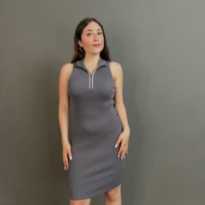 Sleek and versatile, this ribbed dress features a front zipper that adds a bold, modern edge. The body-hugging fabric enhances your silhouette, making it perfect for both daytime chic and night-out glam.