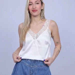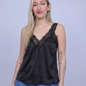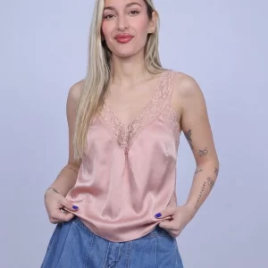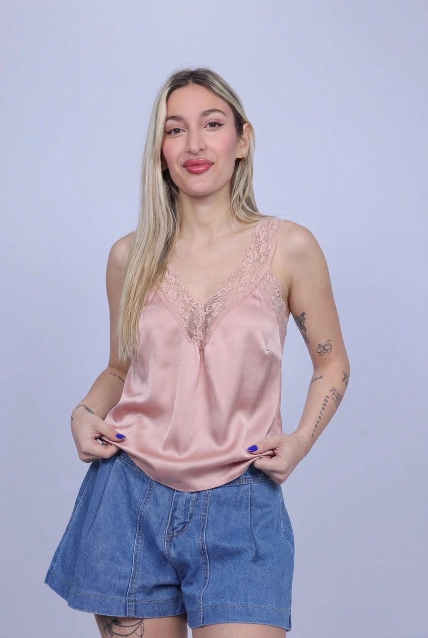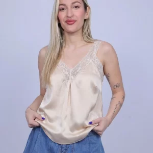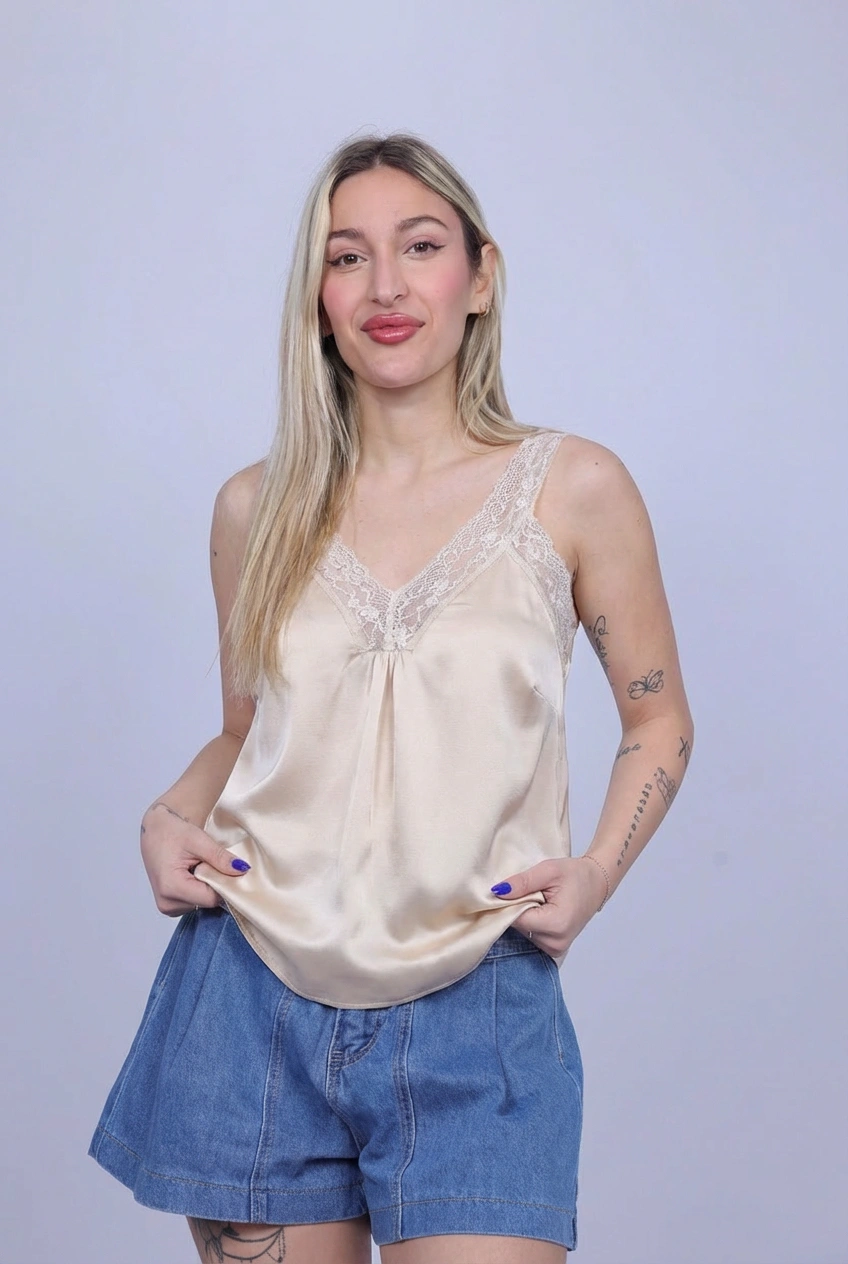 This satin camisole brings a soft, elegant touch to your wardrobe with its fluid fabric and delicate lace detailing along the neckline. The relaxed fit drapes beautifully, offering both comfort and a refined look, perfect for day-to-night styling.
