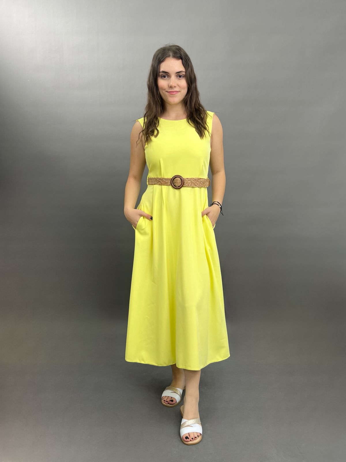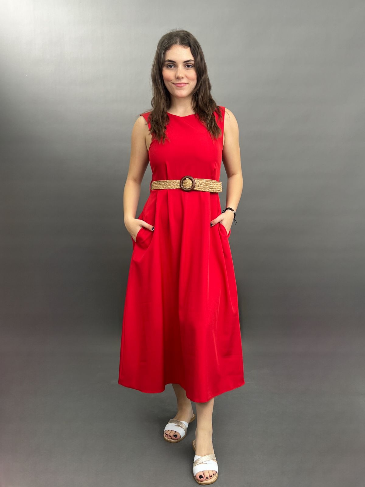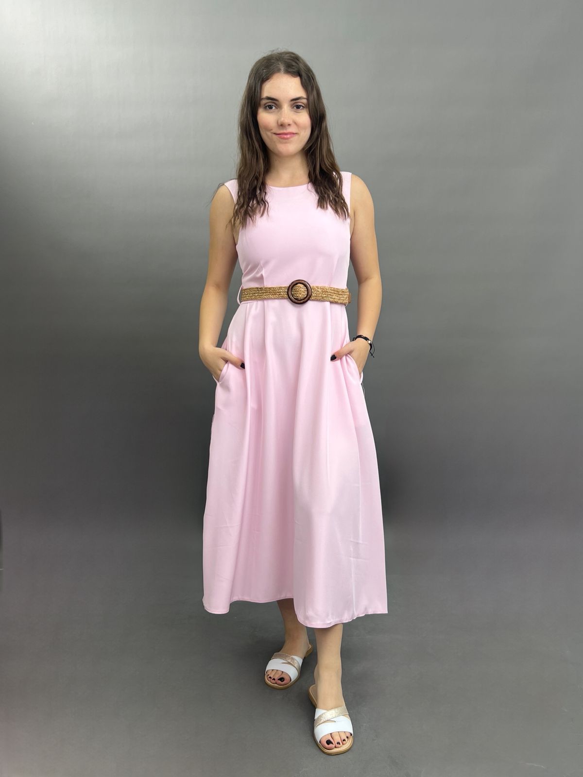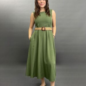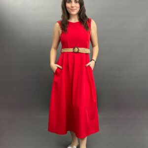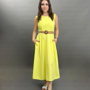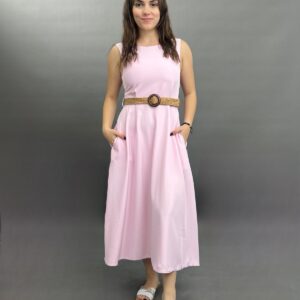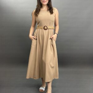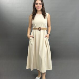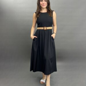 Sleeveless Midi Dress with Woven Belt