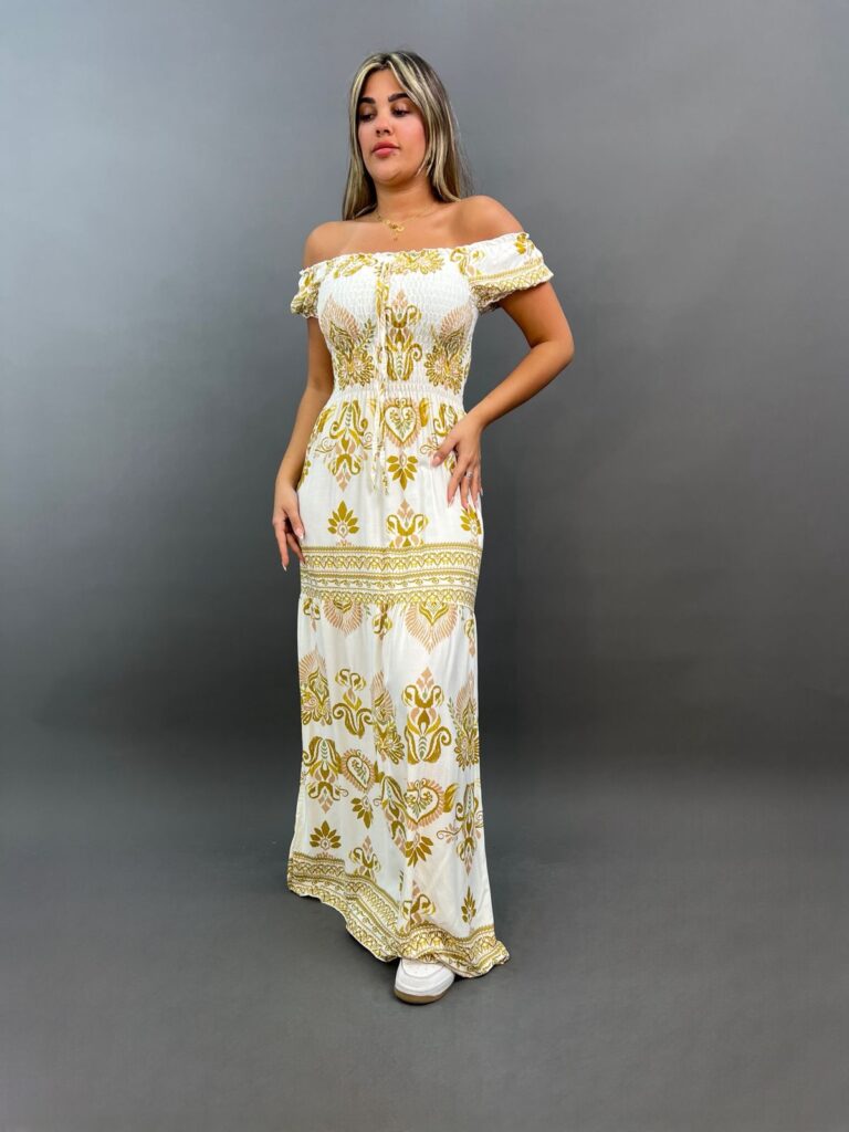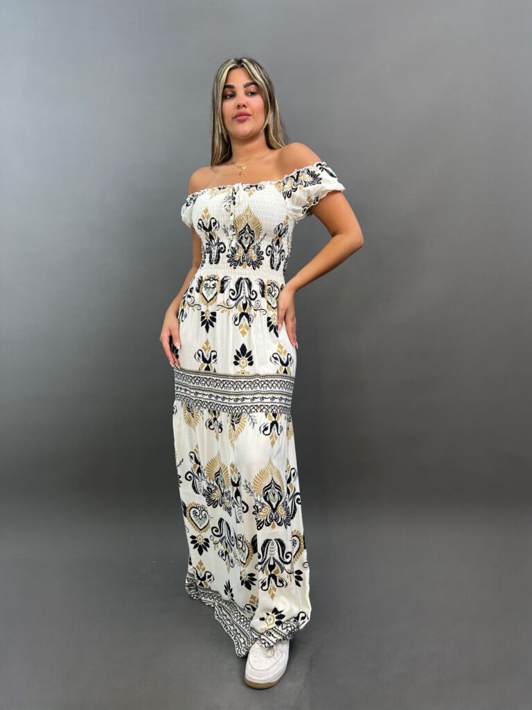 Added to your favoritesSaleOff Shoulder Maxi Dress49.50 $ Original price was: 49.50 $.9.50 $Current price is: 9.50 $.Size: One SizeColor: NavyYellowBeige