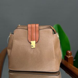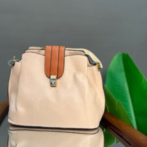 A structured, box-style shoulder bag featuring an elegant scalloped top line and expanding side gussets. The front closure consists of a contrasting, smooth strap secured by a sleek, rectangular metal push-lock. The main body of the bag has a fine textured finish, offering a sophisticated appeal perfect for day-to-evening wear.