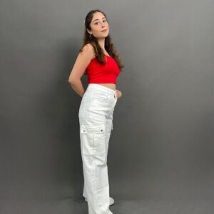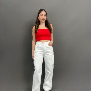 These white cargo jeans blend the classic structure of denim with the functional and edgy elements of cargo pants, making them a must-have for a trendy, street-style look. Designed for both comfort and utility, they offer a relaxed yet flattering fit.